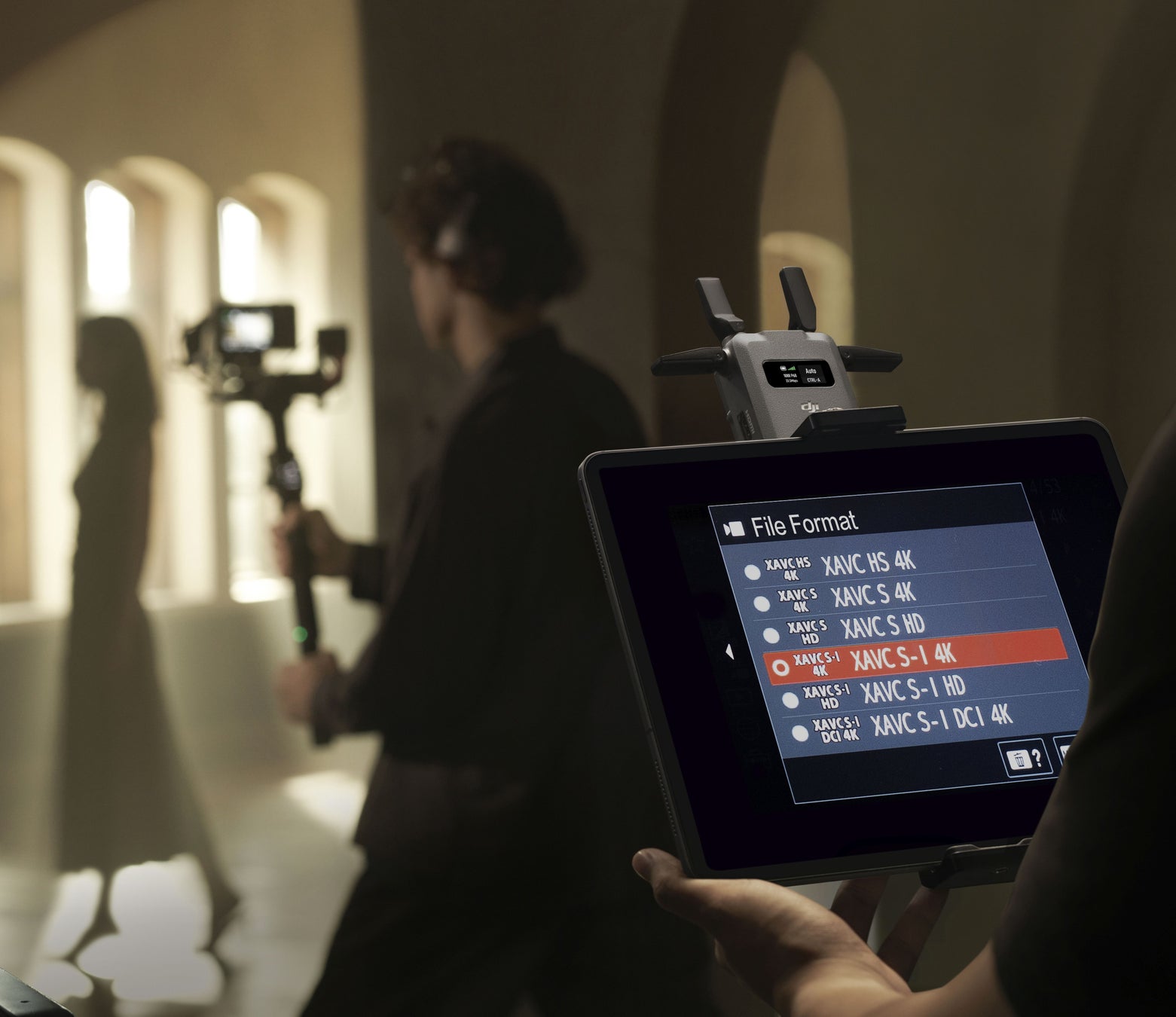 DJI SDR Transmissionはメタデータを伝送できるため、撮影中のコラボレーションが容易になります。DJI SDR Transmissionを配信モードでDJI Roninアプリに接続し、アプリ内でカメラインデックスをシームレスに切り替えることができます。また、SDI経由でARRIやREDなどの主要なシネマカメラの調整が可能なため、ディレクター、撮影者、DITチームは、詳細な撮影情報にリアルタイムでアクセスできます。