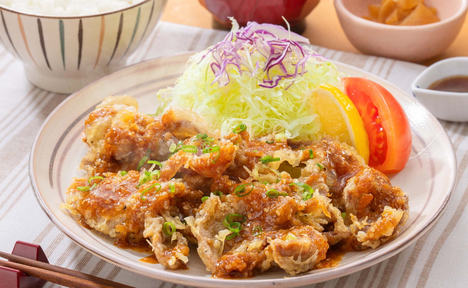 酸味が効いたピリ辛胡麻ダレがやみつきな豚肩ロースの唐揚げ。外はカリッと中はジューシー、にんにくのガツンとした香りが広がり、食欲をそそります。ご飯が進むこと間違いなしの一品です。