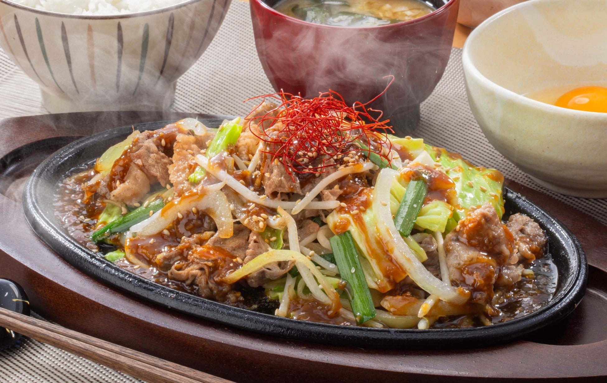 ジューシーで旨み豊かな国産牛とたっぷり野菜のスタミナ鉄板焼き。熱々の鉄板で提供されるこの一皿は、香ばしいにんにくの香りが食欲をそそります。生玉子を絡めることで、まろやかな味わいに。ボリューム満点で、心ゆくまで満足できる一皿です。
