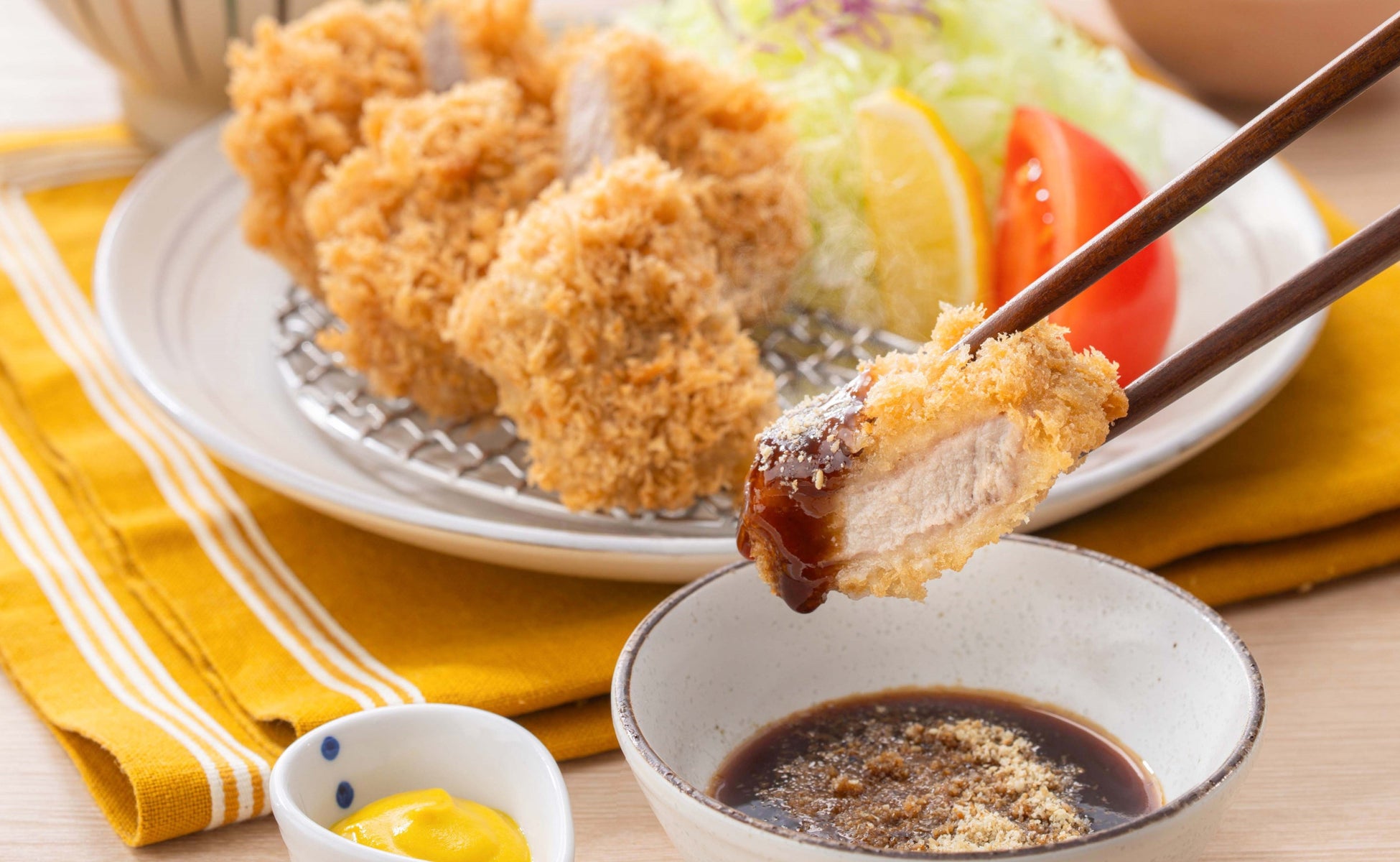 やわらかく、きめ細やかな肉質が特徴の三元豚ヒレ肉を、大戸屋こだわりの生パン粉で揚げた一品。サクッと香ばしい衣の中に、しっとりとした肉の旨みが広がります。注文を受けてから、一つ一つ丁寧に低温で揚げています。白ごまをかけて、さらに豊かな味わいに。