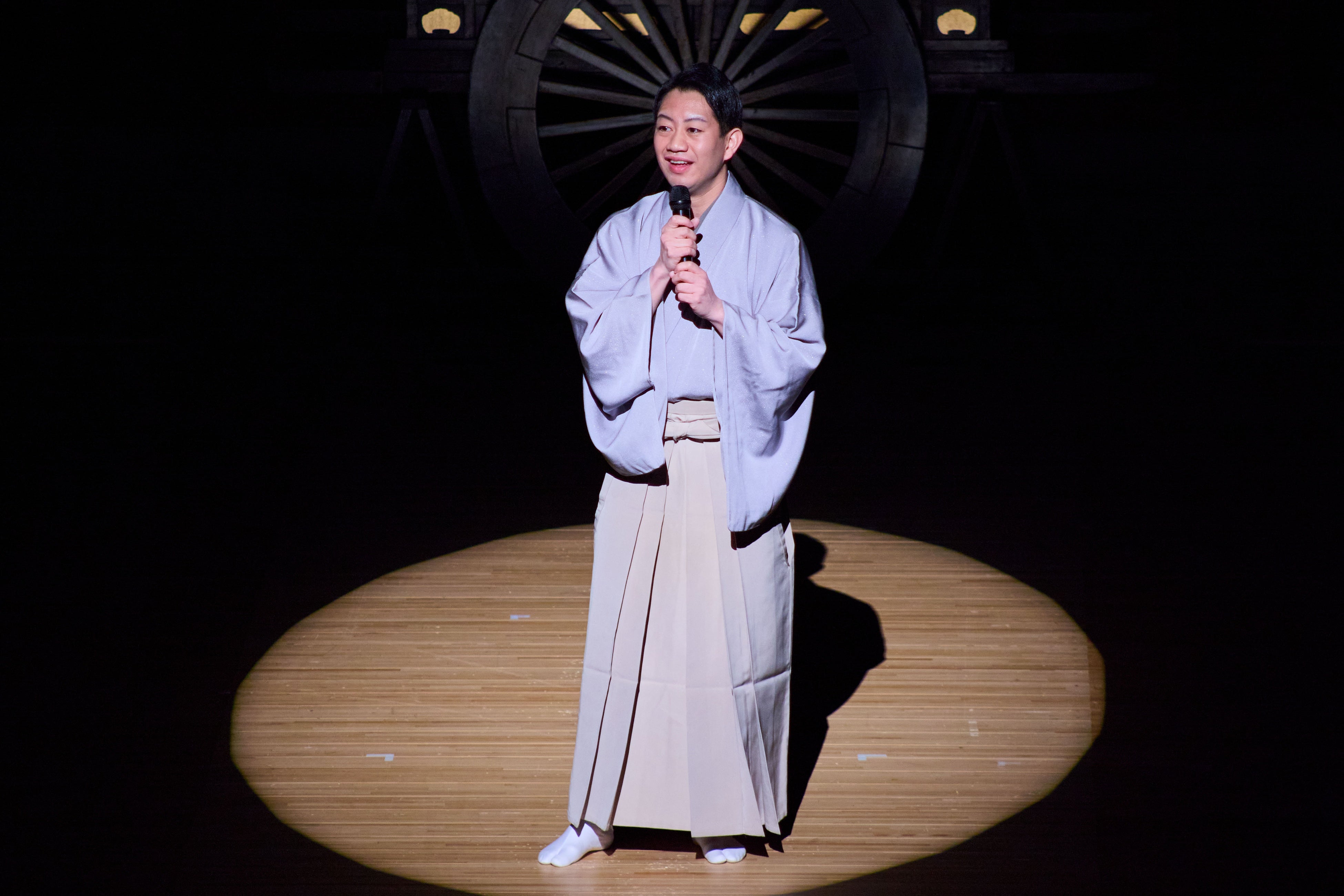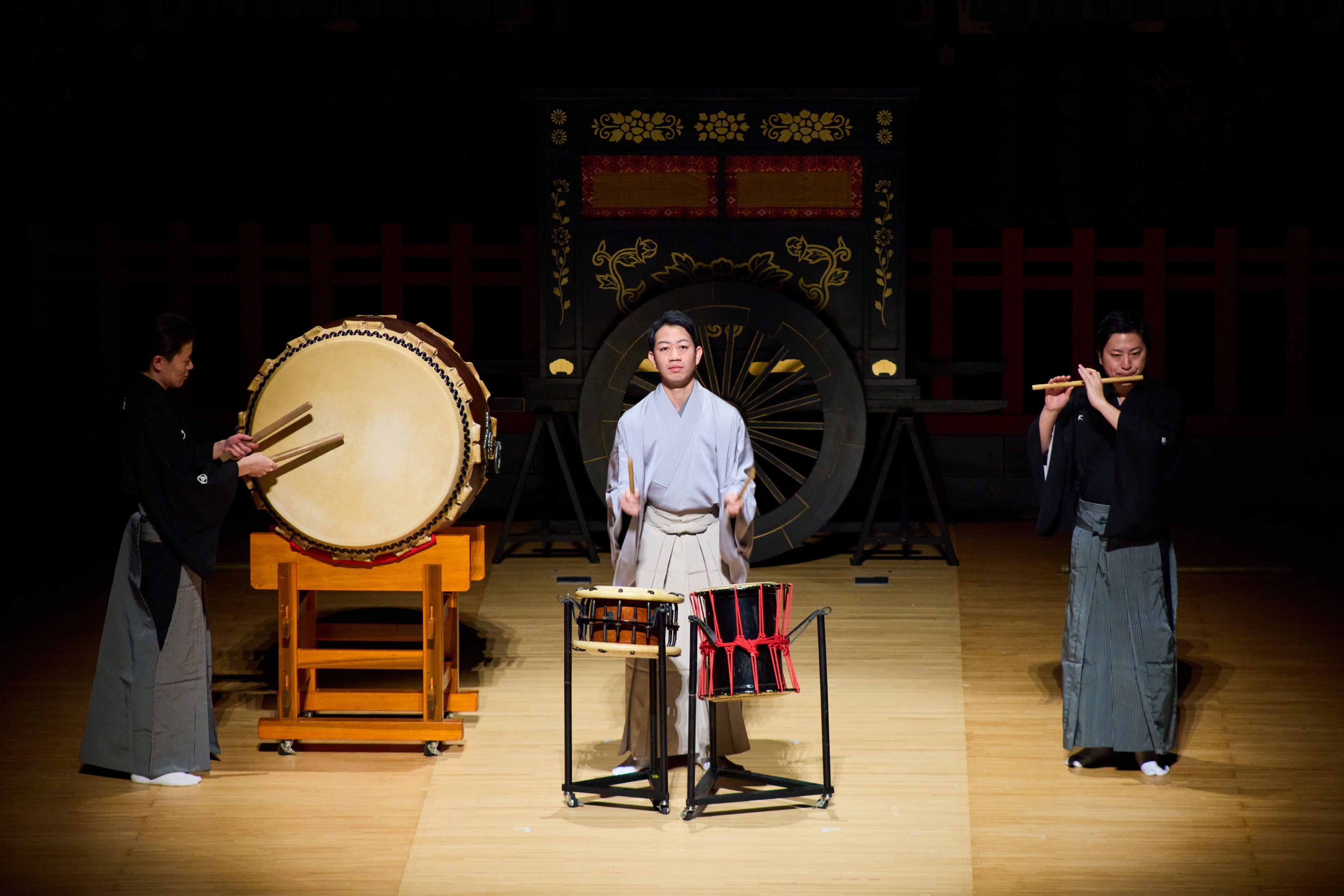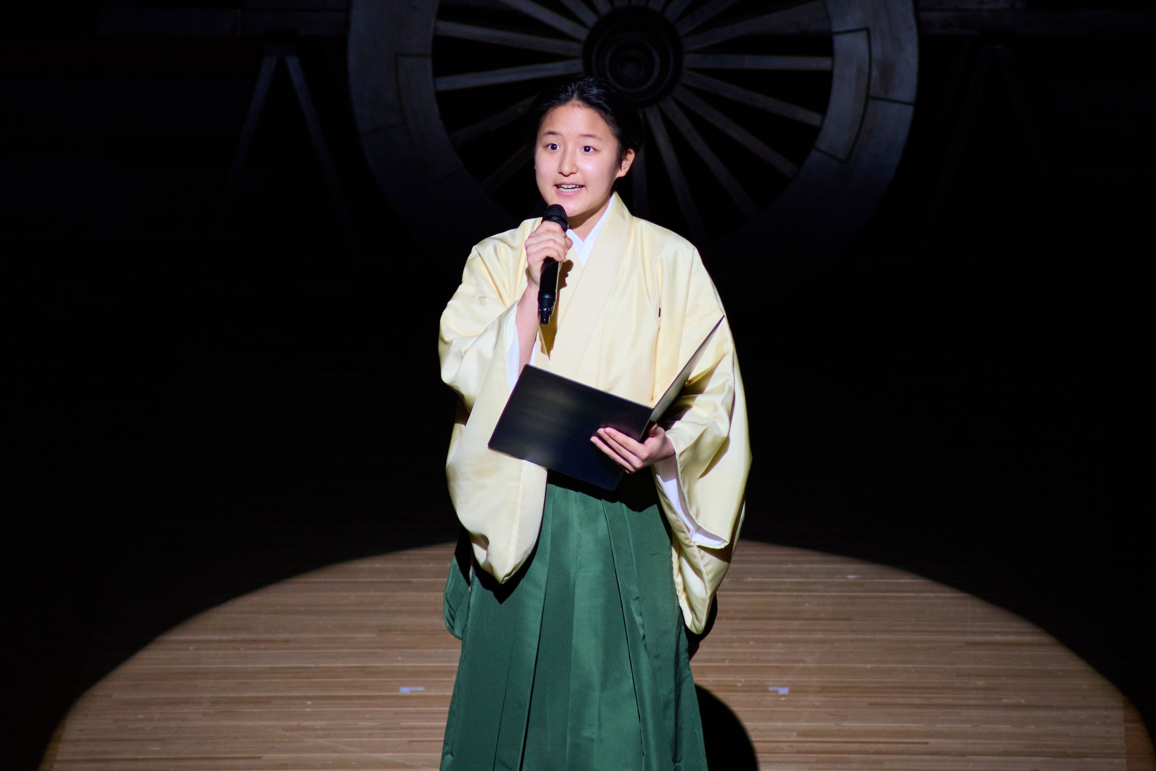 開会式ではこの度の公演でも生徒に指導を行った歌舞伎俳優・中村壱太郎氏らがお囃子演奏を披露。その後、壱太郎氏より英語で挨拶が行われました。