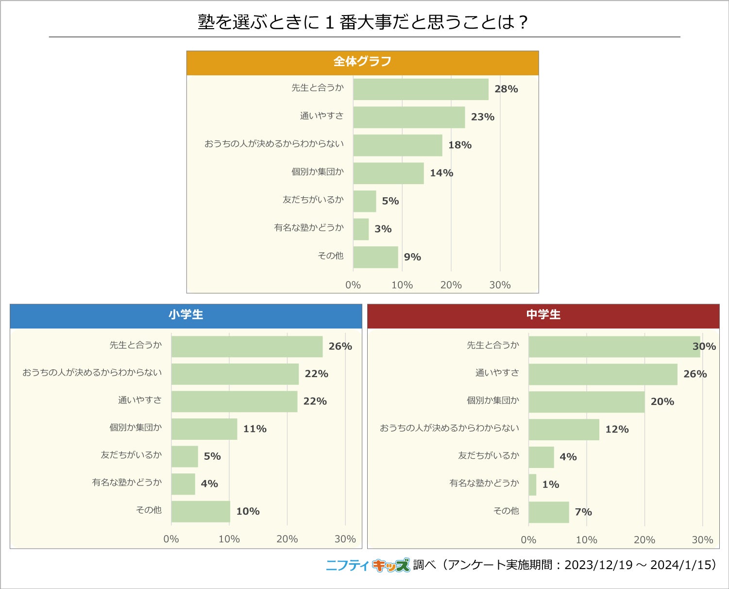 塾を選ぶうえで多くの人が大事だと思っていることは「先生と合うか」でした。