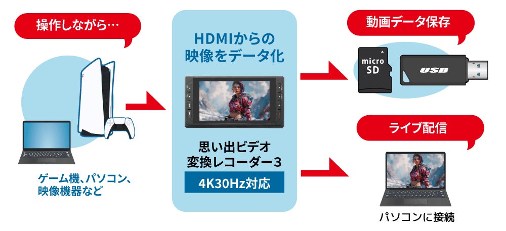 当社は、思い出のイベントや成長記録、地域や学校に残る記録映像など、貴重な過去の資産を次世代へと受け継ぐためのアイテムとして、「思い出ビデオ変換レコーダー」を市場に展開いたします。