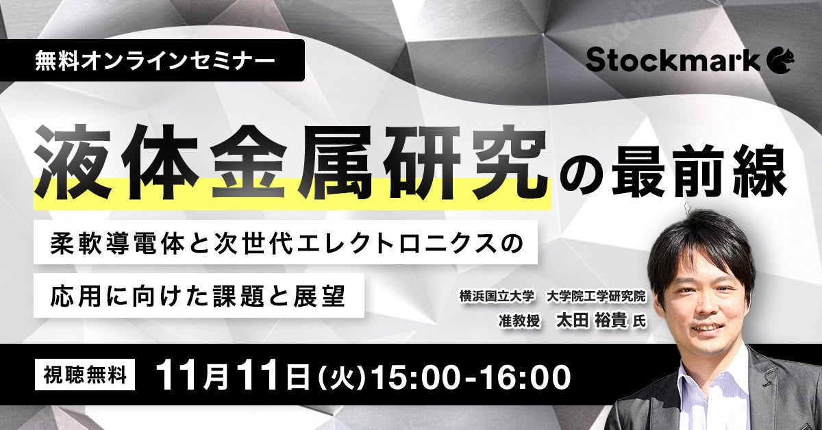 【11月11日(火) 無料セミナー】『液体金属研究の最前線 ― 柔軟導電体と次世代エレクトロニクスの応用に向けた課題と展望』(ストックマーク主催)