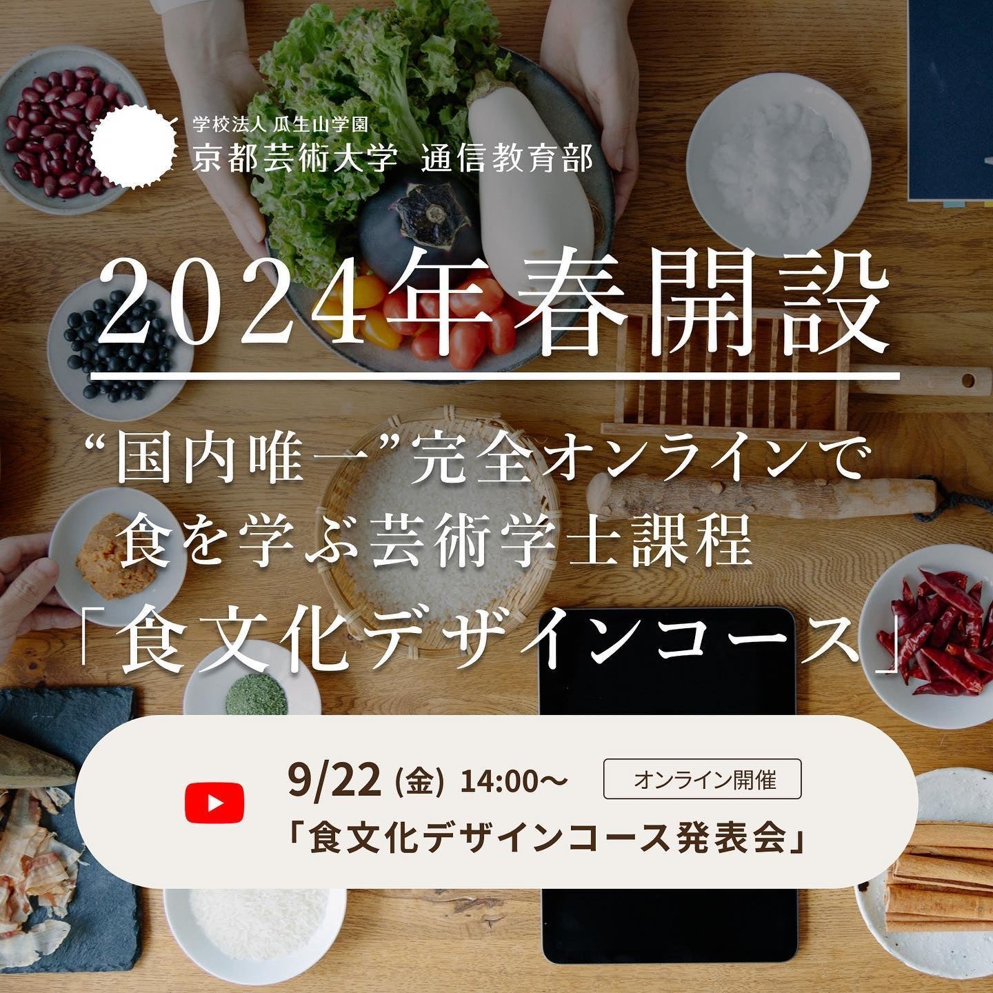 学校法人瓜生山学園 京都芸術大学(京都市左京区/学長 吉川左紀子)は、2024年春、国内唯一(※)、完全オンラインで「食」を学ぶ芸術学士課程「食文化デザインコース」(正式名称:通信教育部芸術学部デザイン科食文化デザインコース)を開設します。本コースでは、食を文化芸術ととらえ、食に関わる幅広い知識と豊かな感性を学び、食文化の担い手を育成します。