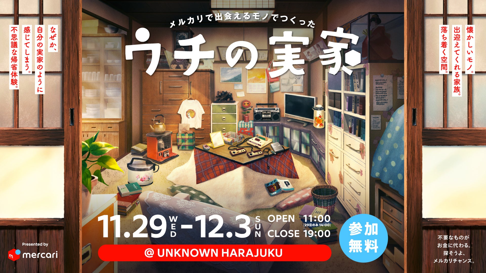 メルカリ、年末に向けた「捨てるをへらす」ための取り組みの一環として「メルカリ」で出会えるモノ500点以上でつくった没入型施設「ウチの実家」を期間限定で原宿にオープン