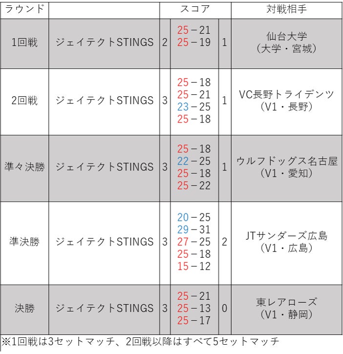 ジェイテクトSTINGSは、天皇杯優勝の勢いそのままに、1月7日に再開するV1 MENでの上位進出に向け、最善の準備を尽くします。今後とも変わらぬご声援をよろしくお願いいたします。