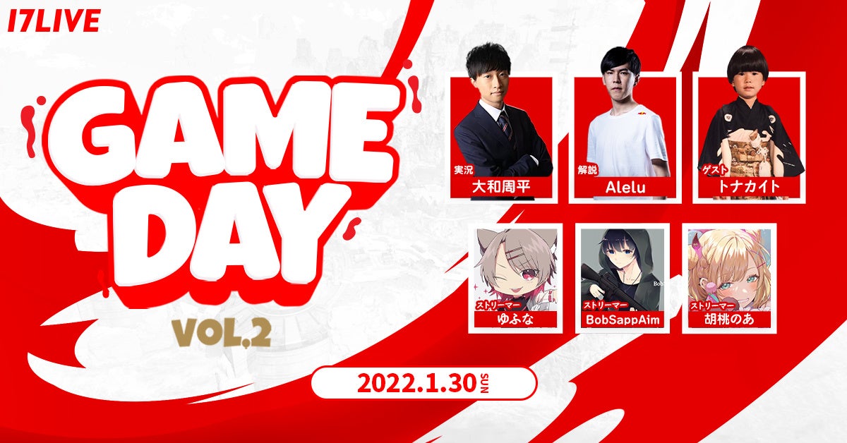 17LIVE株式会社(東京都港区、代表取締役:小野 裕史、URL:https://jp.17.live/)が運営する日本No.1(※1)ライブ配信アプリ「17LIVE(ワンセブンライブ)」は、人気バトルロイヤルゲーム「Apex Legends」(エーペックスレジェンズ)の頂点を競う大会の第2弾として、『17LIVE GAME DAY vol.2 〜Apex Legends〜』を、2022年1月30日(日)に開催することが決定しましたので、お知らせ致します。
