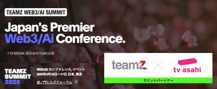 2024年度に続き、テレビ朝日が日本最大級のWEB3/AI カンファレンス「TEAMZ WEB3 / AI SUMMIT 2025」サミットパートナーに参画!