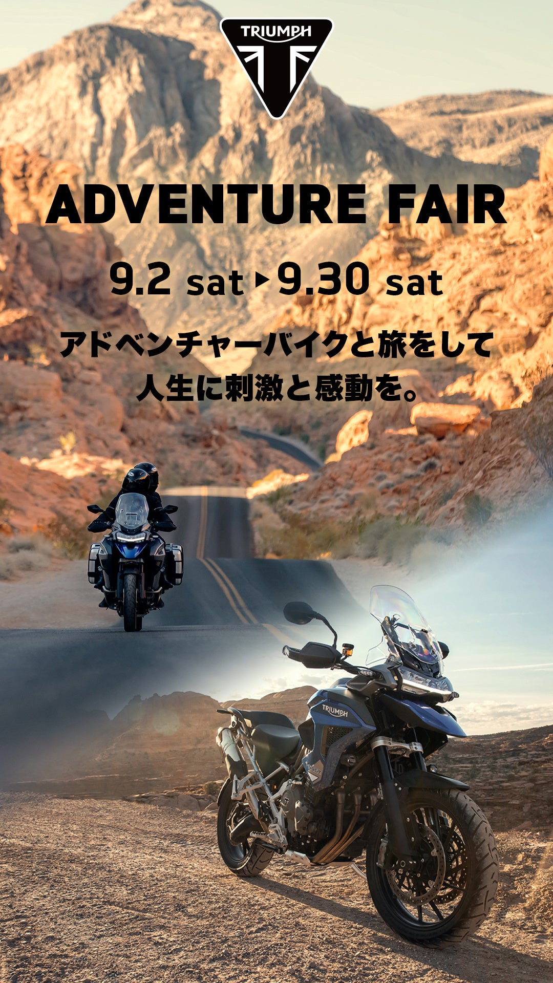 ようやく秋の足音が聞こえ始めたこの季節、ぜひお近くのトライアンフ正規販売店でキャンプやロングツーリングを心ゆくまで楽しめるアドベンチャーバイクをご覧ください。