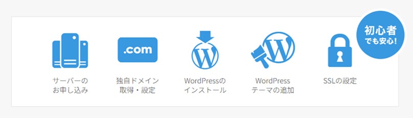 『ConoHa WING』は、申込と同時にホームページが開設でき、技術的な知識がない方でもサービスごとの個別契約や複雑な初期設定なしに、ホームページが即座に構築できるサービスが揃っています。