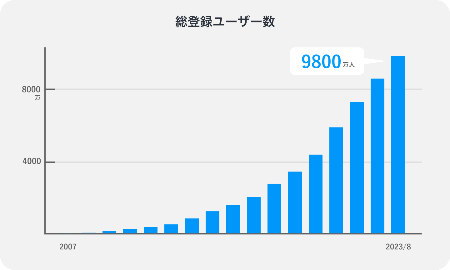 2023年9月時点での総登録ユーザー数は9800万人に上り、世界中のクリエイターやファンが地域や言葉の壁を越えて交流しています。前回ミッション・ビジョン・バリューが定められた2018年と比較すると3倍以上のユーザー数に成長し、多種多様な形で創作活動を楽しむサービスへと日々発展しています。