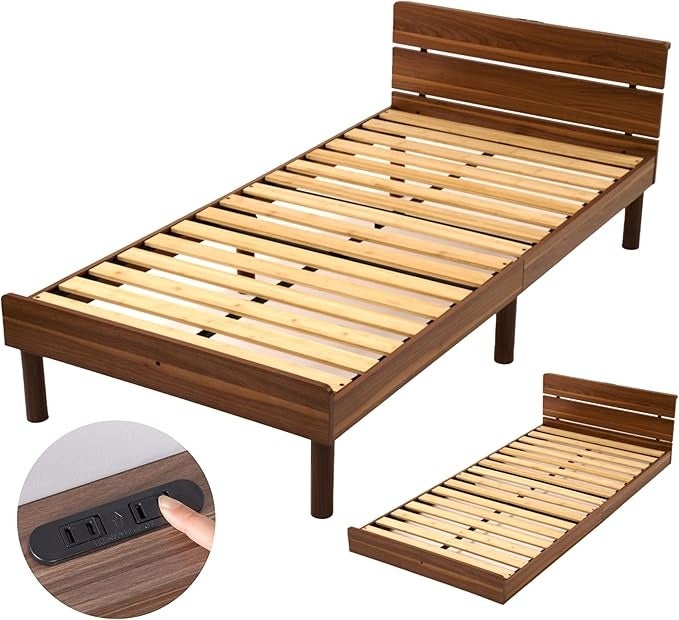 木材の約2〜3倍の強度を持つ竹素材を贅沢に使用したすのこベッドフレームです。竹の弾性と通気性により、湿気やカビを抑え清潔な寝室環境を保ちつつ、耐久性にも優れています。内部構造には 高強度で軽量なスチールを採用し、長期間の使用でも劣化しにくい設計。また、宮棚には便利な2口コンセントが付いており、スマホやタブレットの充電にも対応できます。脚を取り外せばローベッド仕様にも変更でき、ライフスタイルや部屋の雰囲気に合わせて使い分けられる機能性とシンプルなデザインが魅力です。