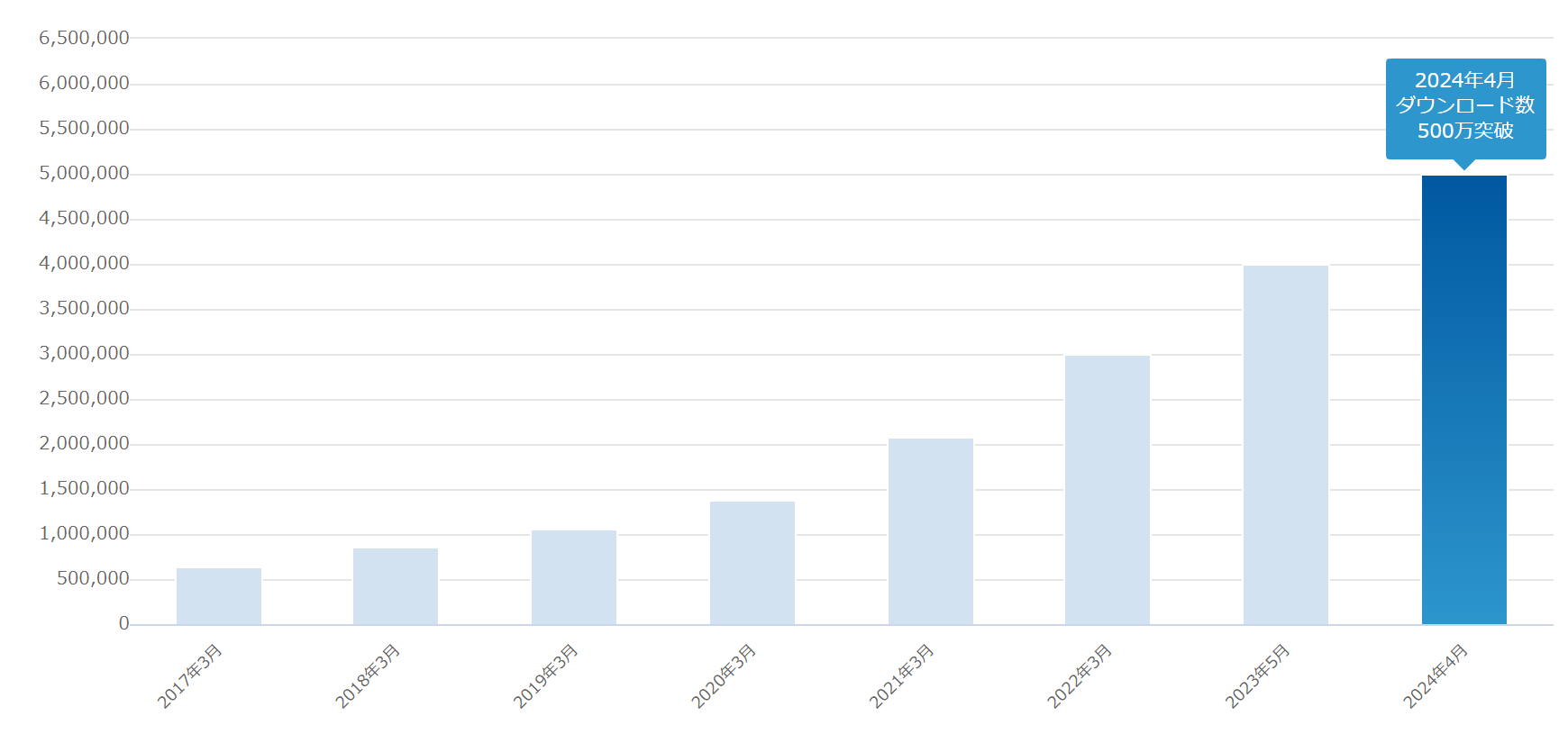 2023年5月にダウンロード件数が400万件を突破して以降、1年に満たない短期間のうちにダウンロード数が100万件増加し、このたび累計500万件を突破しました。