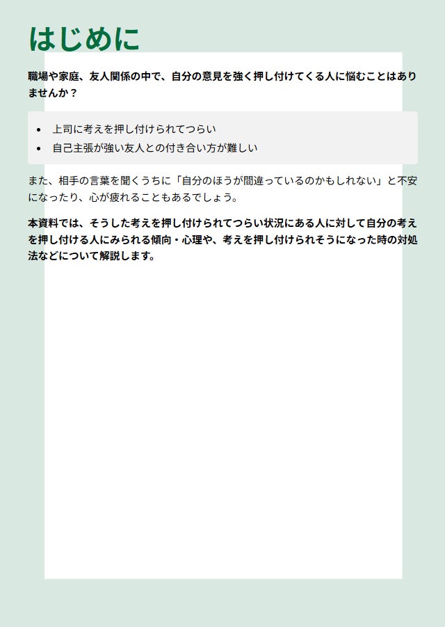 本資料で、考えを押し付ける人から自分を守る方法を学びませんか?