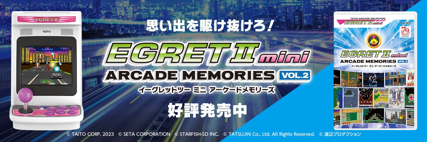株式会社タイトー(本社:東京都新宿区、以下タイトー)は、卓上ゲームセンター『イーグレットツー ミニ』専用ソフト収録SDカード『アーケードメモリーズVOL.2』を本日、2023年12月21日(木)に発売しました。製品の詳細は公式サイトよりご確認ください。