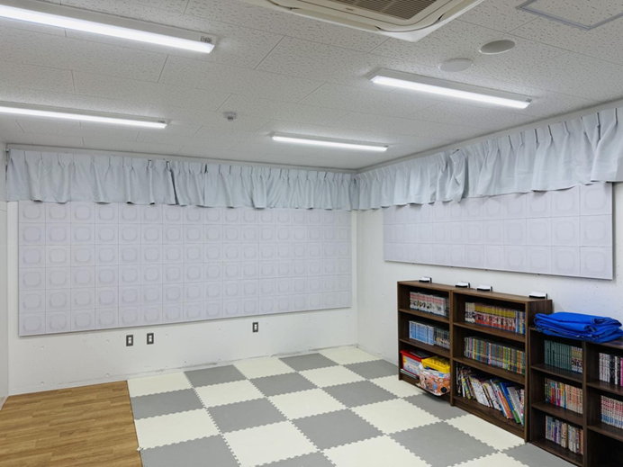 子どもたちが日常的に利用する空間において、見守り員の方々が運用しやすい吸音対策を特に手の届く範囲で実現しました。