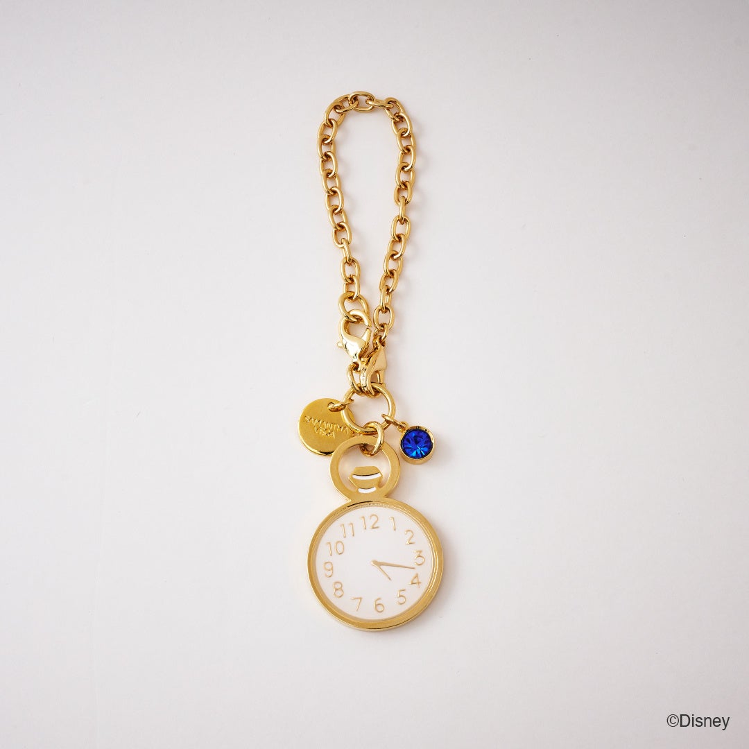 『ふしぎの国のアリス』の物語に登場する「白うさぎ」が持っている時計をモチーフにしたバッグチャーム。