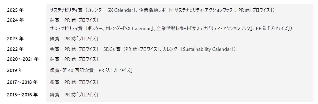 「SX Calendar 2025」では、「ハロみん」に参加するステークホルダーより2050年の未来の世界観を募集し、生成AIを活用してイラスト化しました。また、「サステナビリティ・アクションブック2024」、「プロワイズ」による社外への情報発信、情報開示の積極的な推進が総合的に評価され、全応募作品436点の中からサステナビリティ賞に選ばれました。