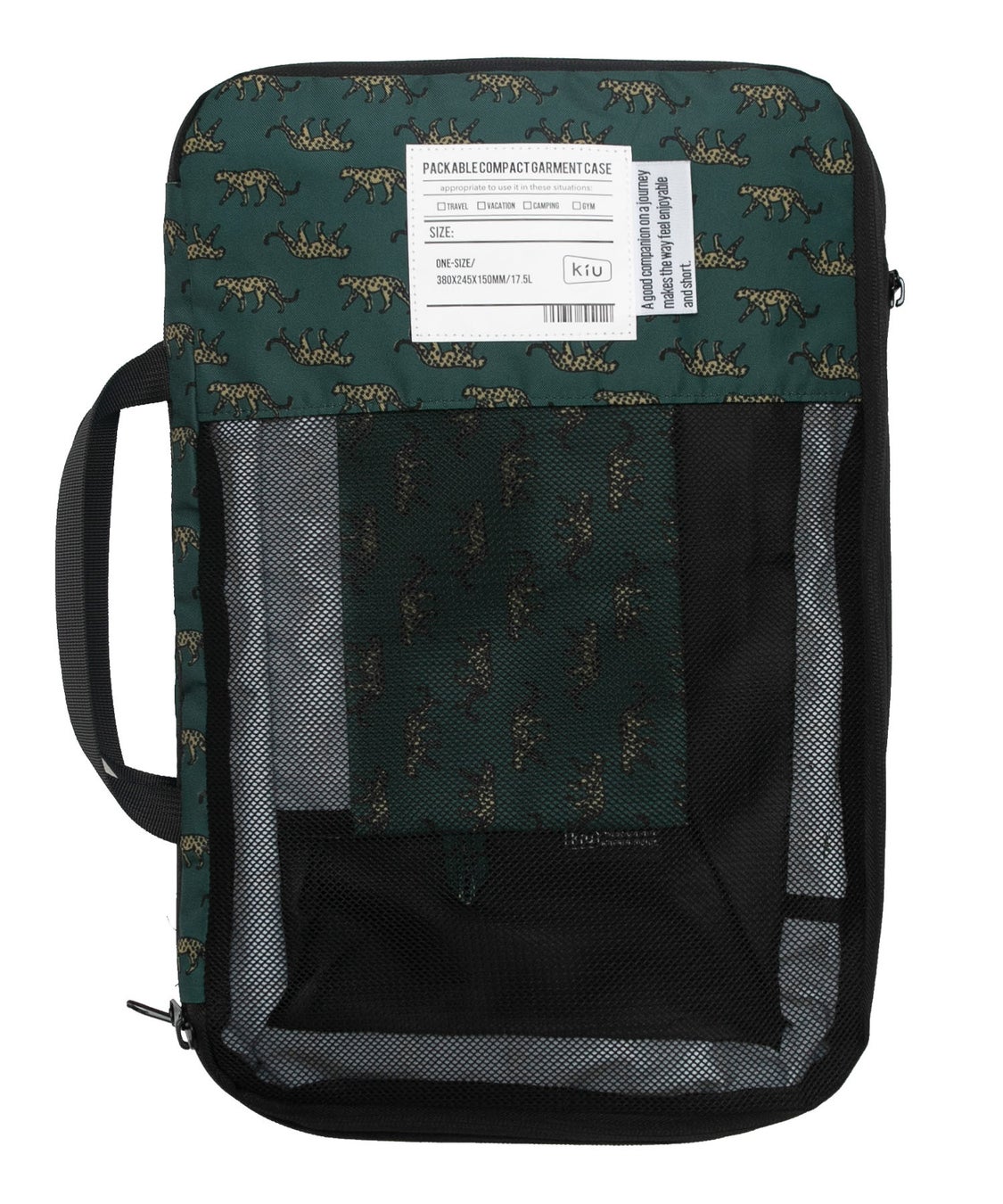 ファスナーで圧縮できる整理整頓パッカブルポーチ。Tシャツ最大15枚収納可能。前後収納付き。