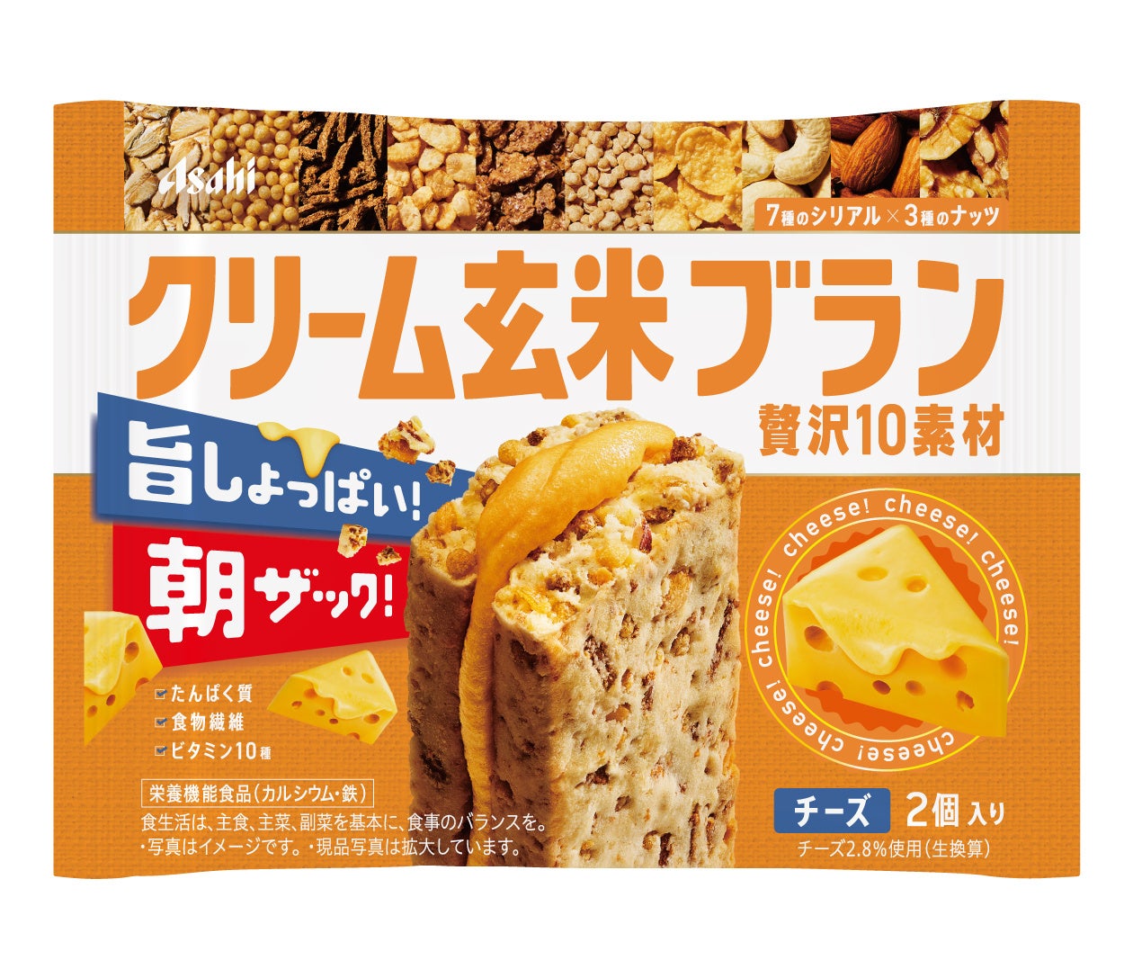 アサヒグループ食品株式会社(本社 東京、社長 川原浩)は、クリームサンドタイプの栄養調整食品「クリーム玄米ブラン」ブランドから『クリーム玄米ブラン 贅沢10素材 チーズ』を3月3日から発売します。