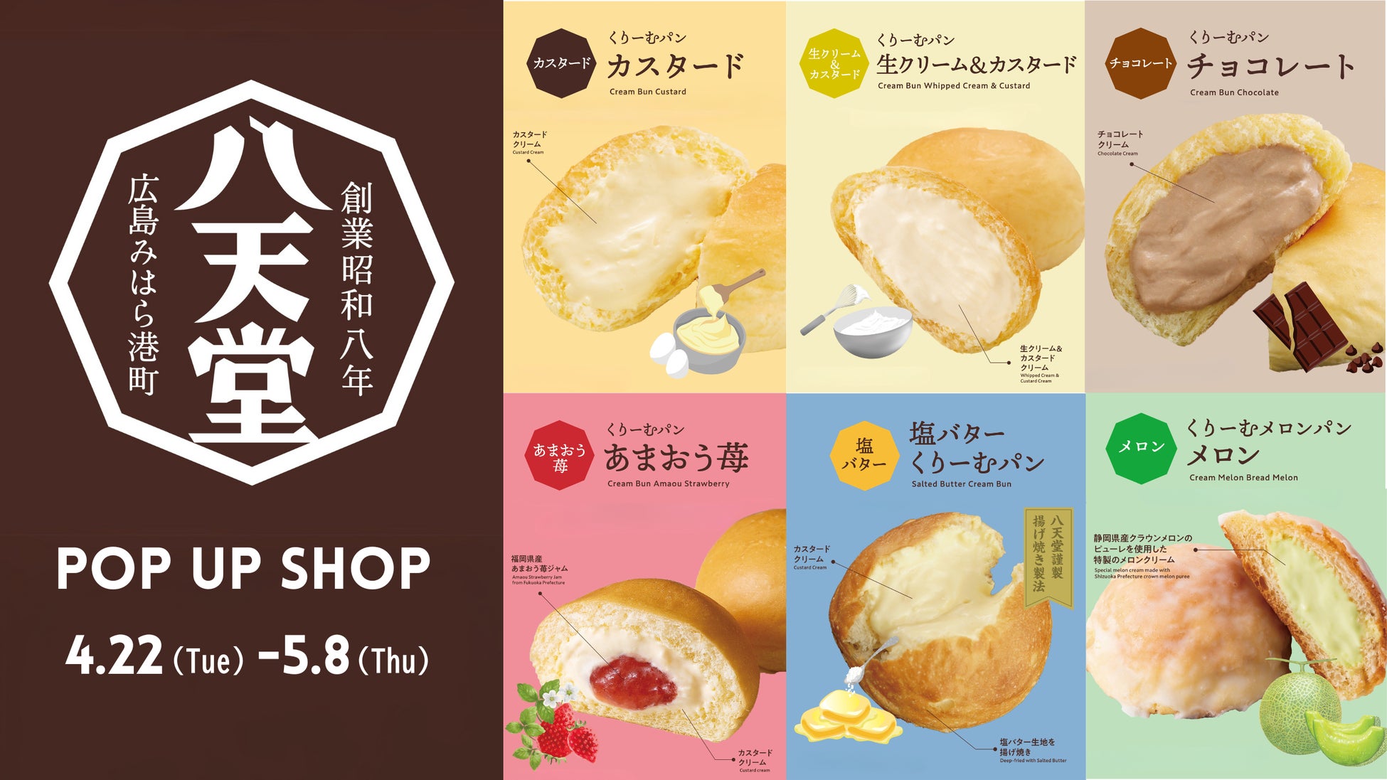 株式会社八天堂(本社:広島県三原市、代表取締役:森光孝雅)は、「そごう横浜店(所在地:神奈川県横浜市西区)」食品売場特設スペースで2025年4月22日(火)より期間限定の催事を開催します。