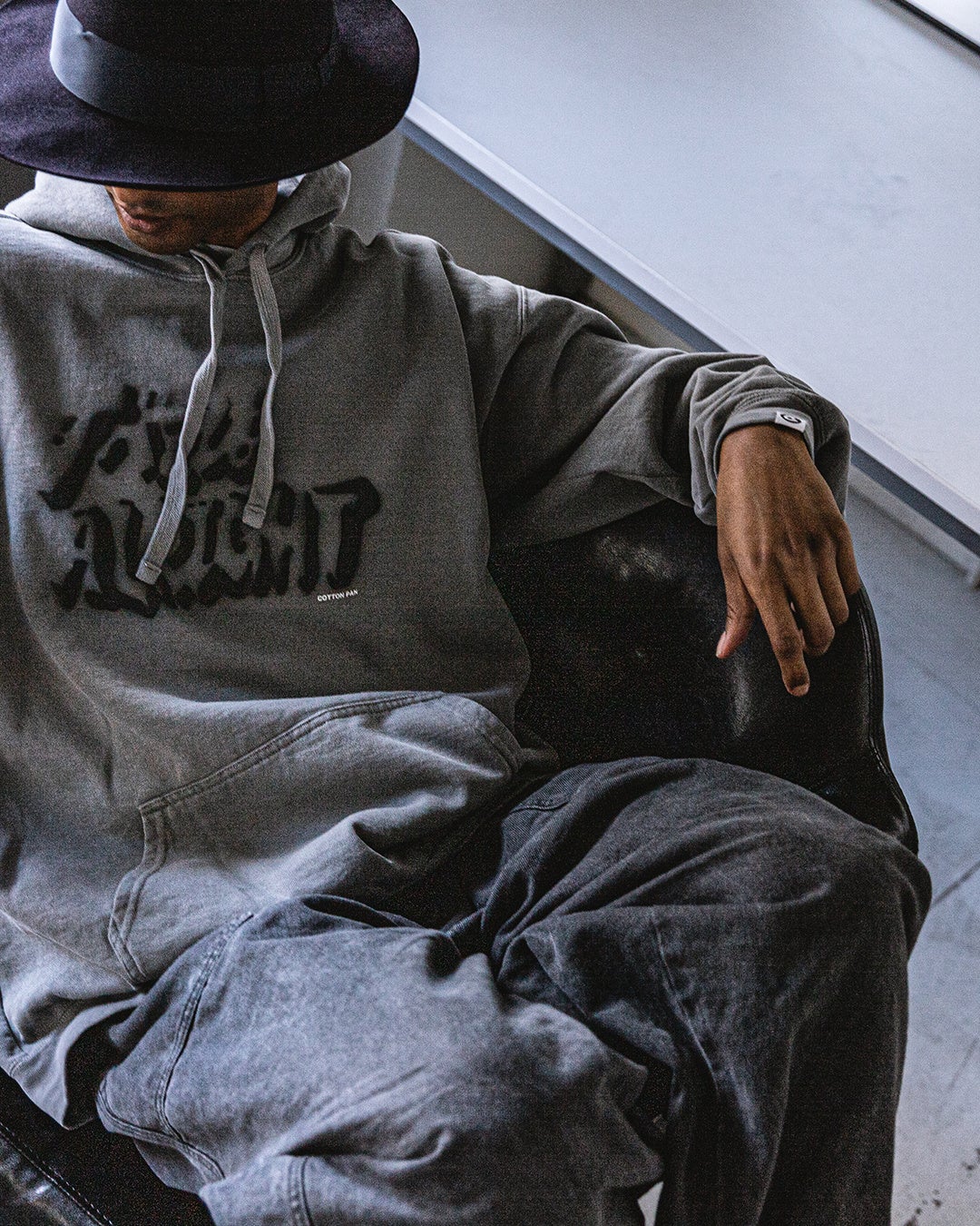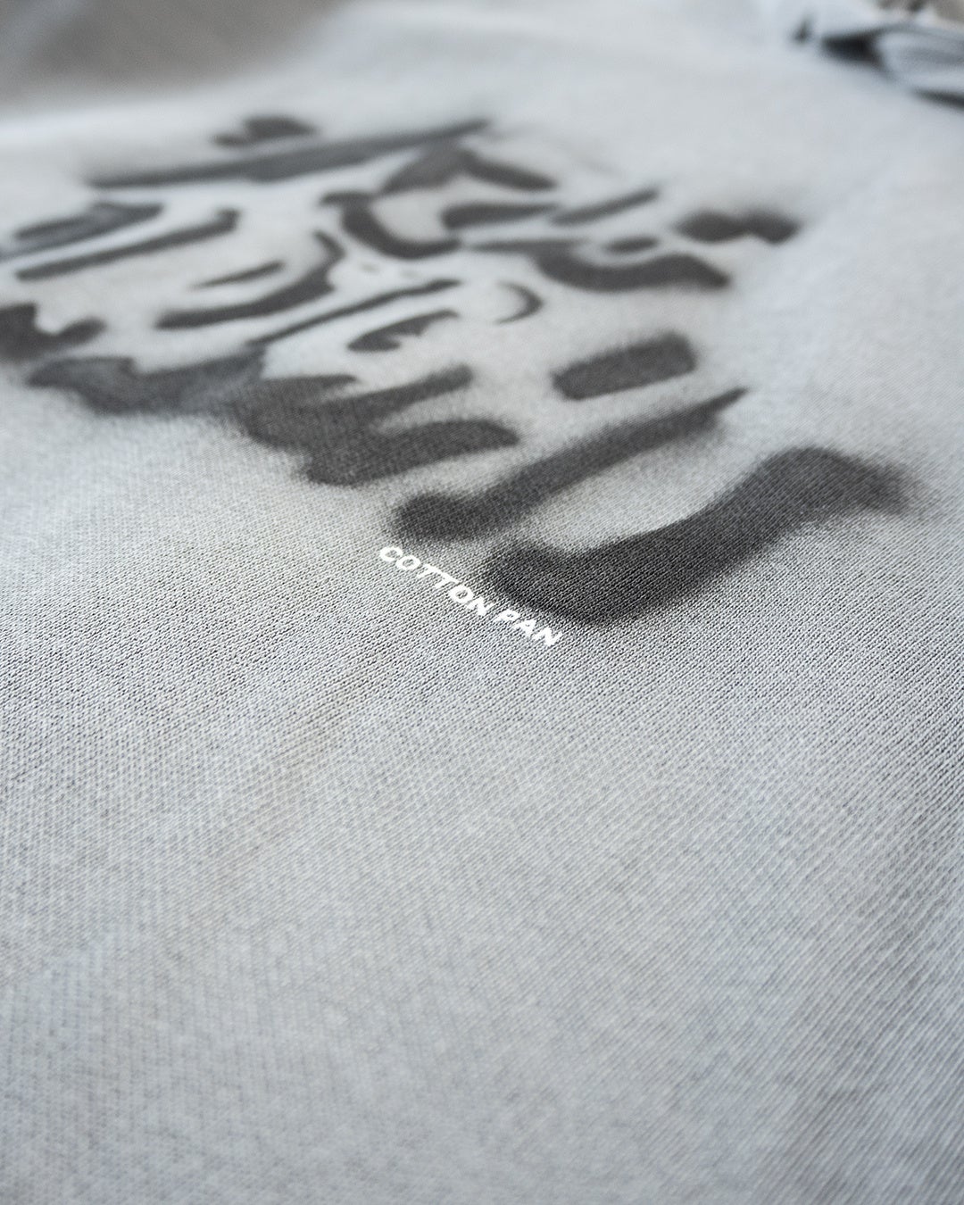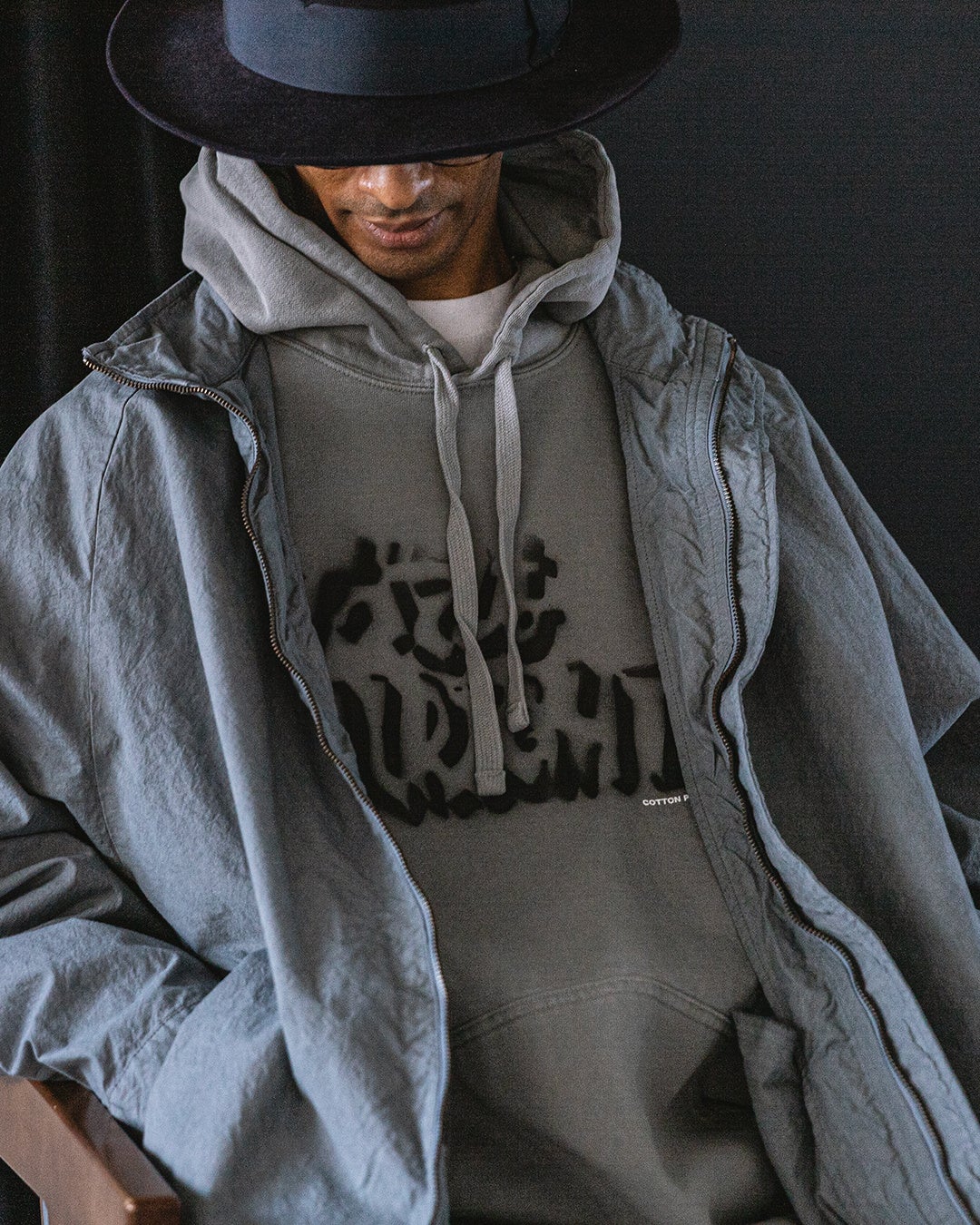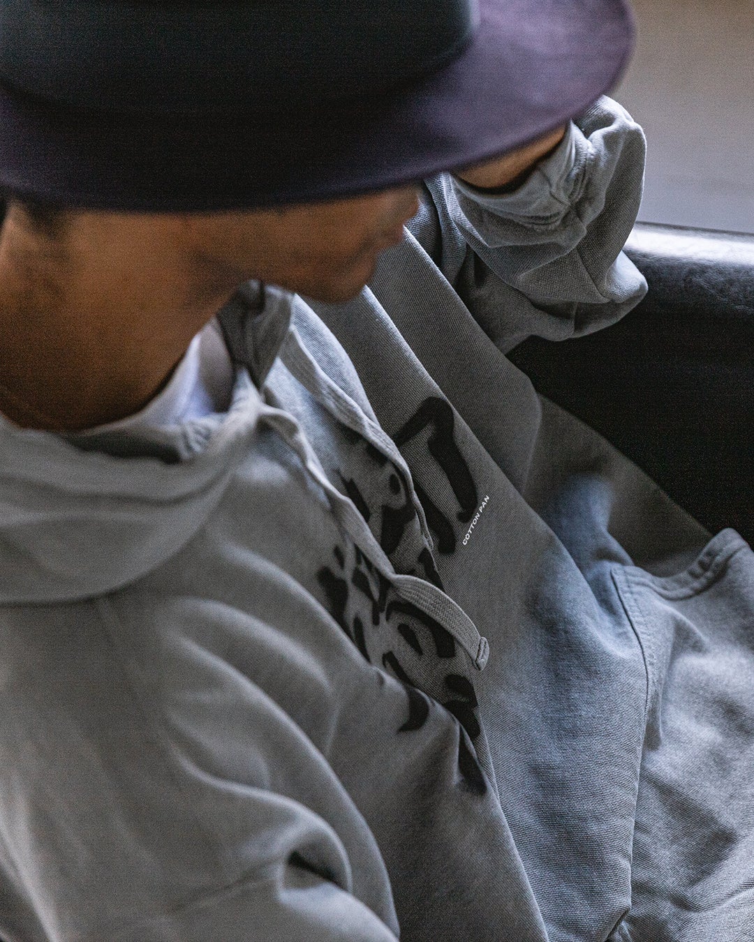 影のステンシルと、色落ちたフーディを掛け合わせ。COTTON PANとCONFECTが、救われる言葉に乗せて共作。