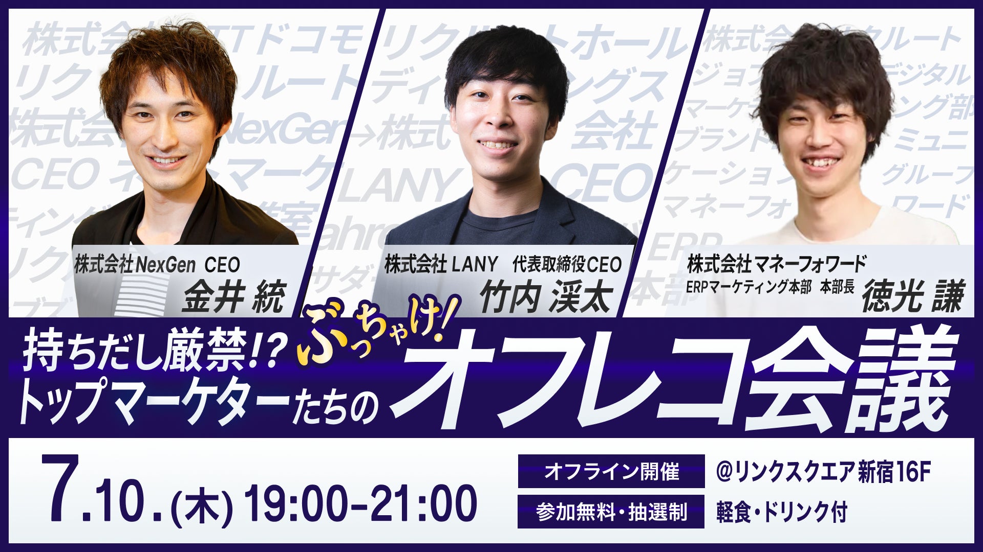 【無料オフラインイベント】持ちだし厳禁!?トップマーケターたちのぶっちゃけオフレコ会議を7/10(木)に開催