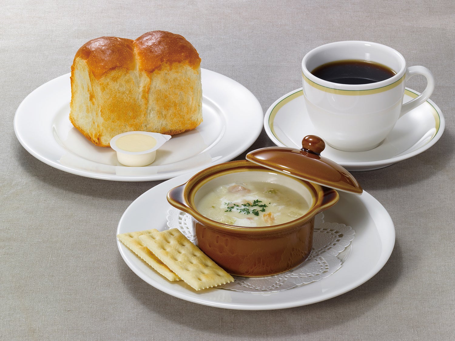クラムチャウダーとドリンクが付いたセットもございます。是非メインのお料理と一緒にお召し上がりください。