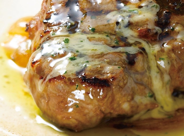ステーキに豪快にかけて、バターの香りと一緒にお楽しみください。