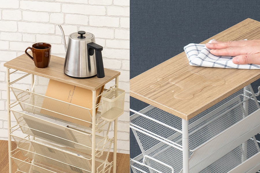 耐熱性・耐水性に優れているのでサイドテーブル代わりに使用できます。
