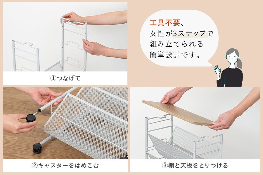 工具不要、女性が3ステップで組み立てられる、mottoleの嬉しい簡単設計製品です。