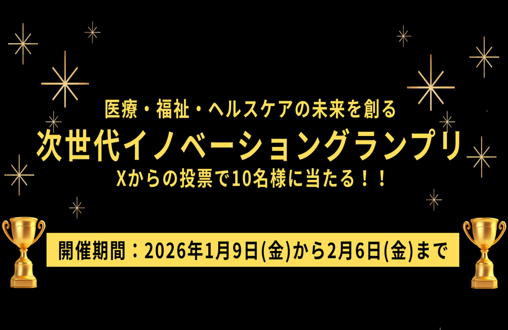一般社団法人日本経営協会(本部事務局:東京都渋谷区、会長:高原豪久)は、医療・福祉・ヘルスケア分野の注目企業を一般投票で選出するオンラインイベント「次世代イノベーショングランプリ」 を、2026年1月9日(金)~2月6日(金)の期間で開催いたします。