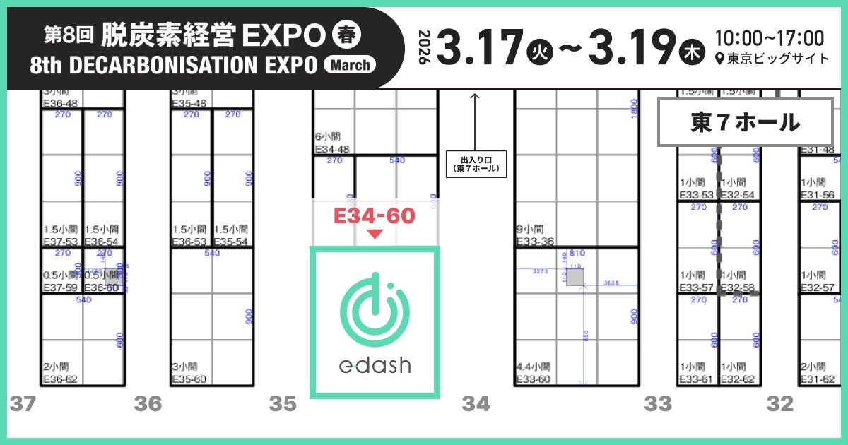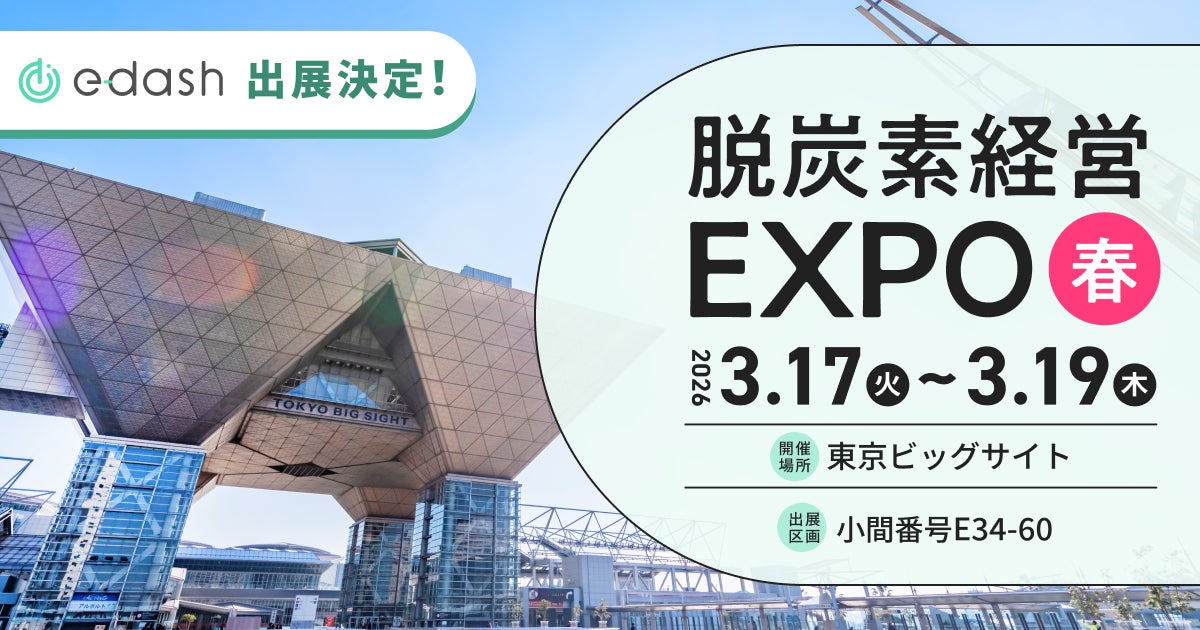 e-dash株式会社(本社:東京都港区、代表取締役社長:山崎冬馬、読み:イーダッシュ、以下「当社」)は、2026年3月17日(火)~19日(木)に東京ビッグサイトで開催される「第8回 脱炭素経営 EXPO【春】」に出展します。