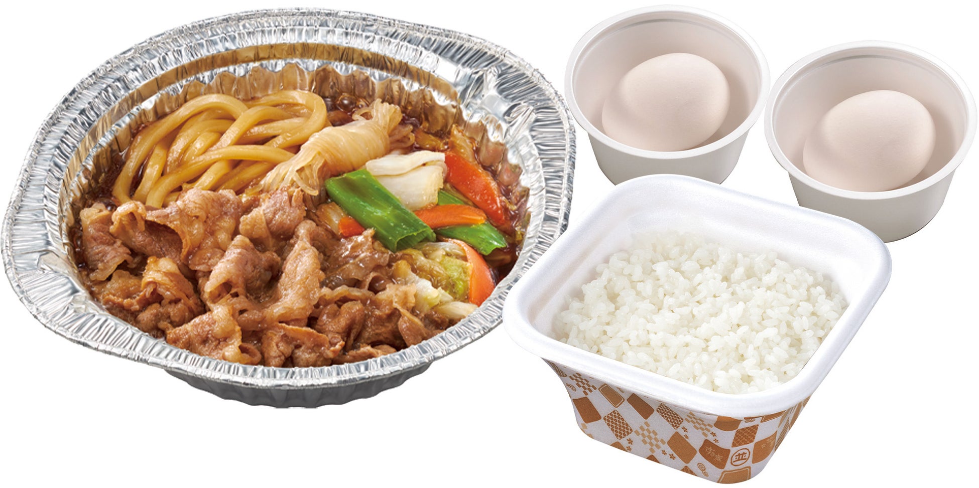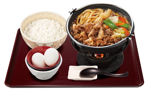 「牛すき鍋定食」は、たっぷりのお肉に合わせてたまごが2個付き、溶き卵や卵とじなどお好みの食べ方でお楽しみいただけます。