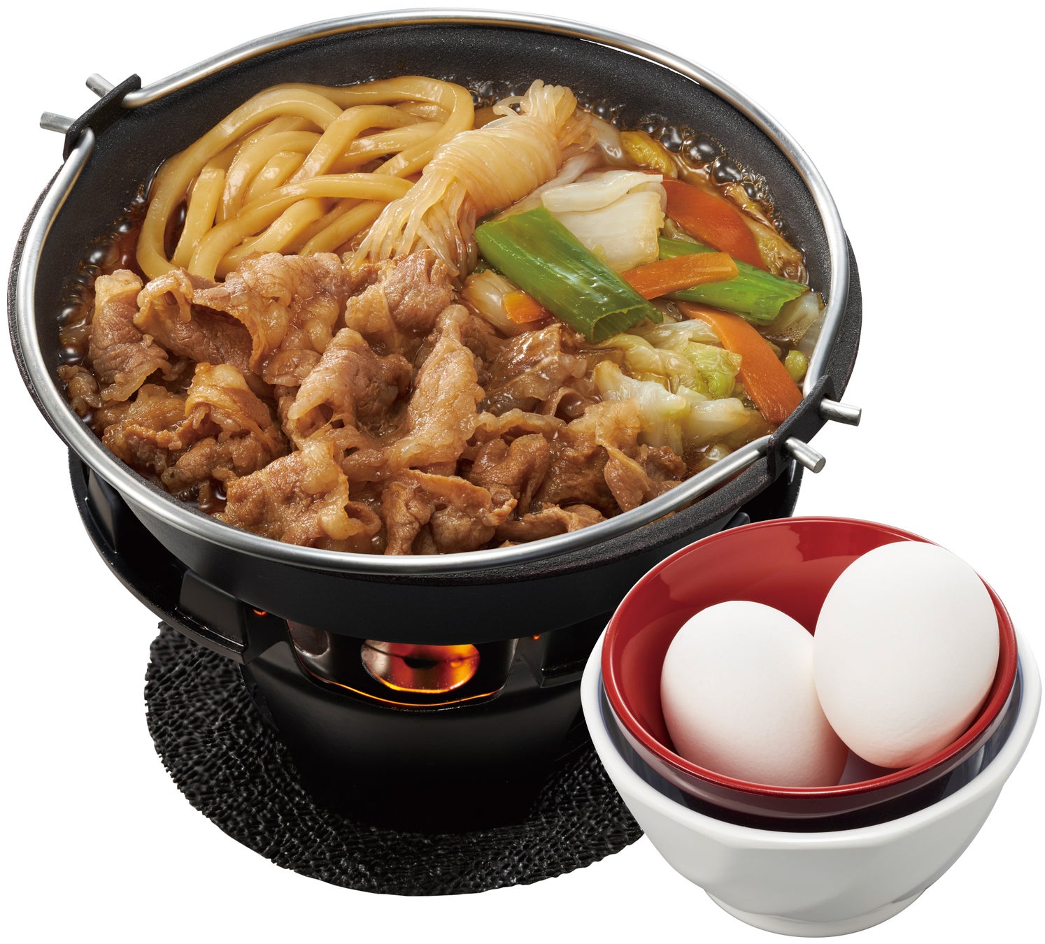 今年もすき家に鍋の季節がやってきました!特製の割り下がしみ込んだ柔らかなお肉や半日分の野菜※、うどんをグツグツと目の前で煮込みながら召し上がっていただく「牛すき鍋定食」はすき家の冬の定番商品です。