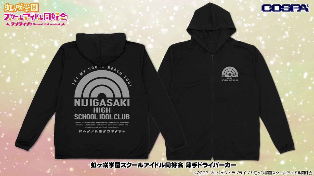 『ラブライブ!虹ヶ咲学園スクールアイドル同好会』「ニジガク」メンバー13名の名前が刻まれた薄手ドライパーカーが登場!【株式会社コスパ】
