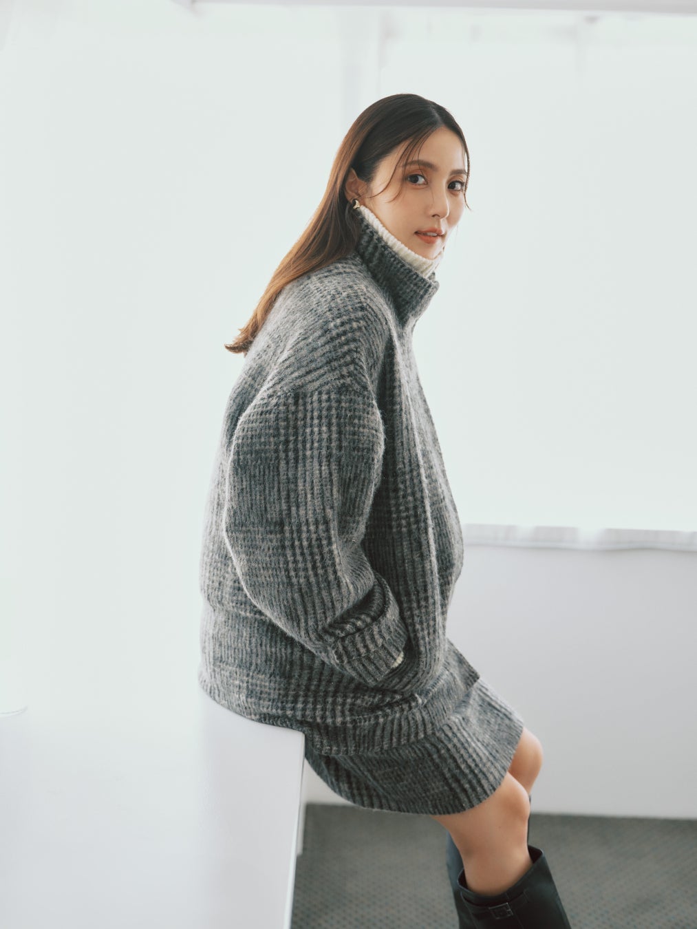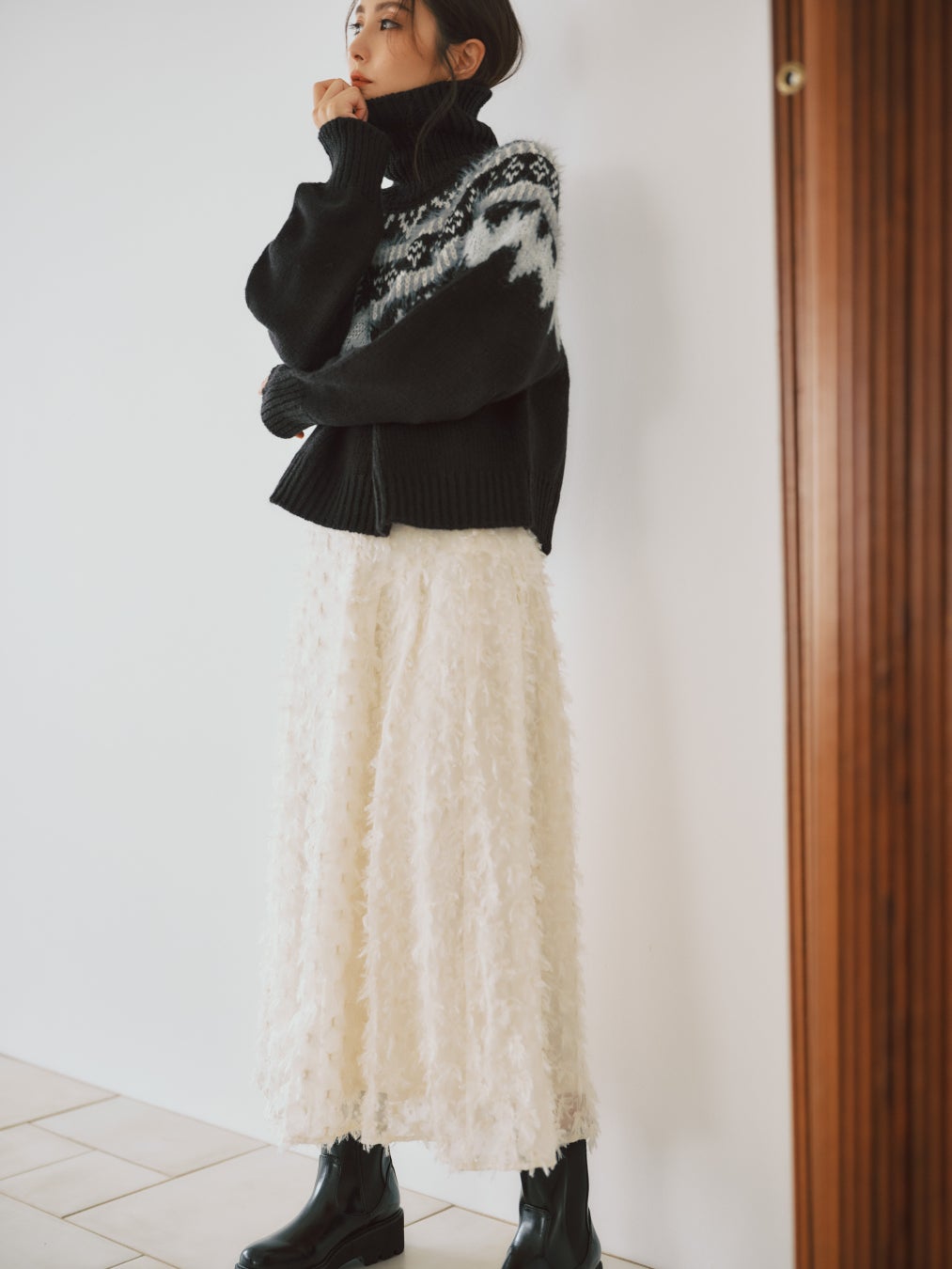 KNIT_¥20,900 SKIRT_¥24,200 BOOTS_¥25,300