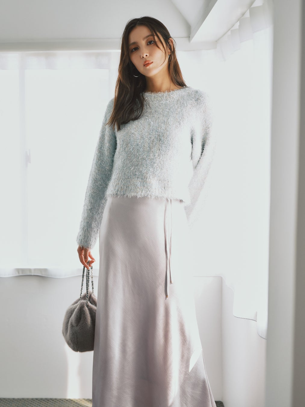 KNIT_¥19,800 SKIRT_¥20,900 BAG_¥15,400 SHOES_¥18,700