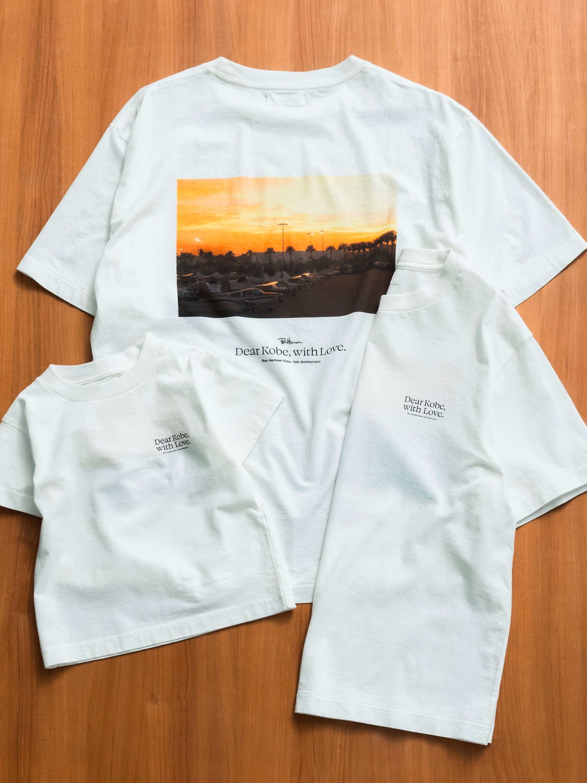 15年前の神戸店オープンの際に使用した純広告の写真と共に、神戸店15年のテーマでもある、”Dear KOBE with LOVE”のメッセージを添えたプリントTシャツです。