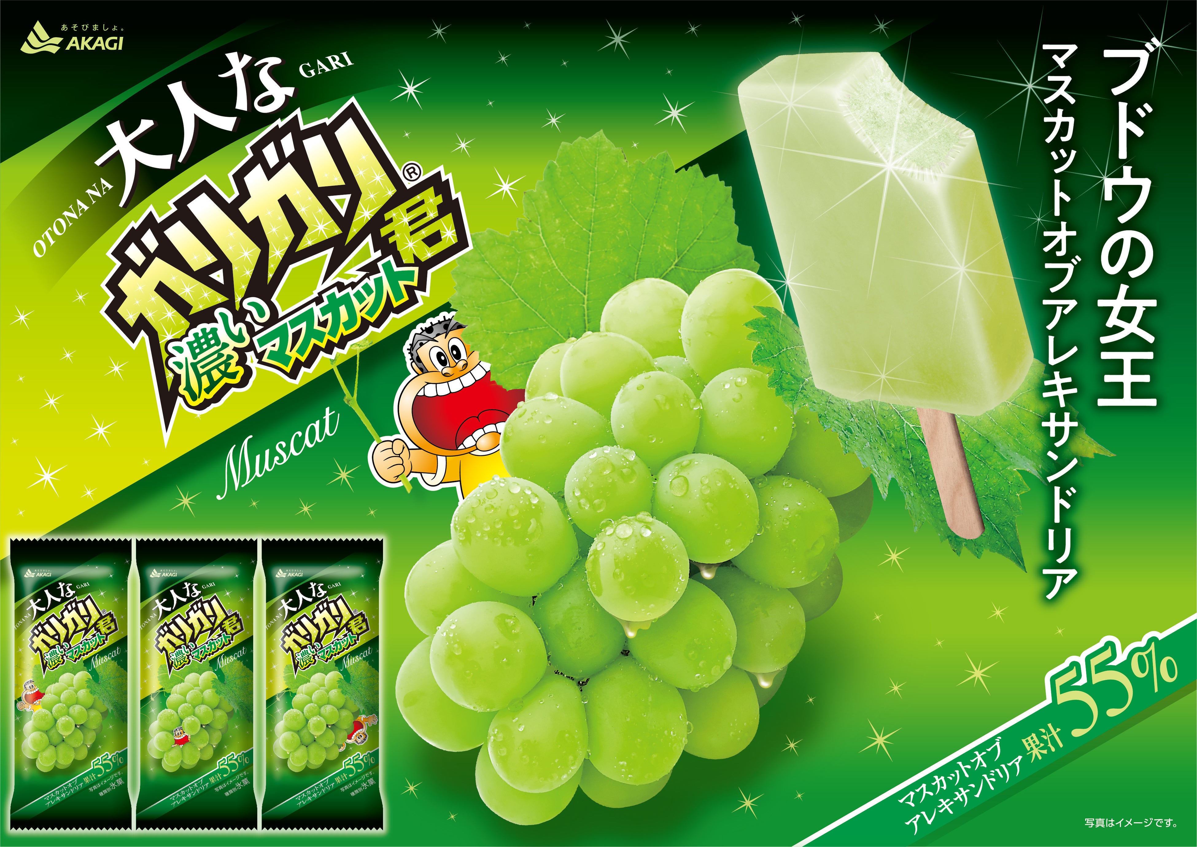 ガリガリ君にブドウの女王が降臨!? マスカットオブアレキサンドリア果汁を55%使用! 実はガリガリ君の食べたい味、第2位※。「大人なガリガリ君濃いマスカット」