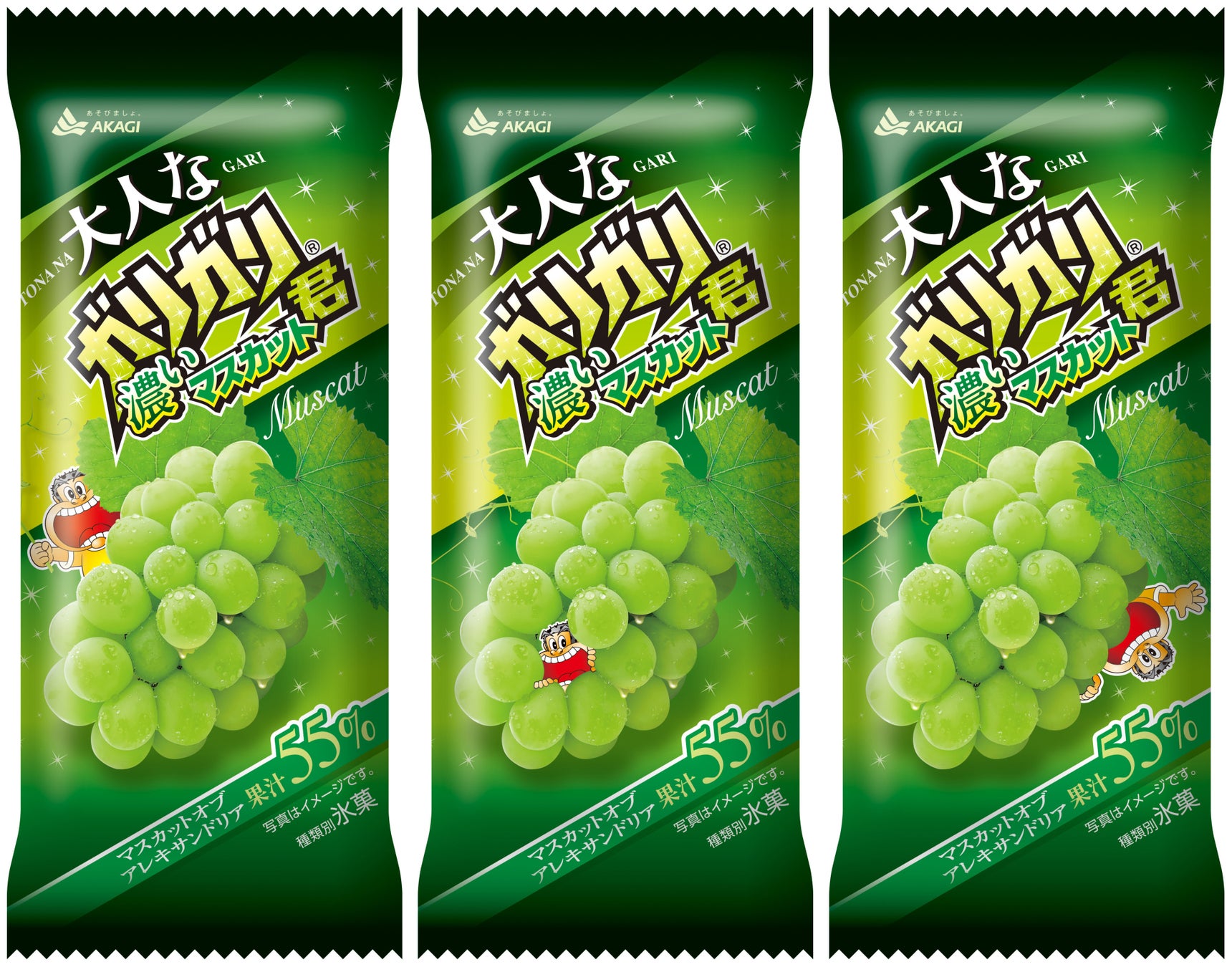 マスカット味は、ガリガリ君40周年企画として2020年9月10日から10月15日の期間に赤城乳業公式ホームページで実施した「ガリガリ君の食べたい味募集(※)」で2位となり、2021年は惜しくも商品化を逃しましたが、今回待望の商品化となりました。この機会に、ぜひお楽しみください。