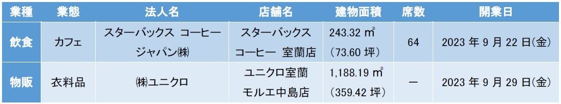 ・店舗名称 :スターバックス コーヒー 室蘭店、ユニクロ室蘭モルエ中島店