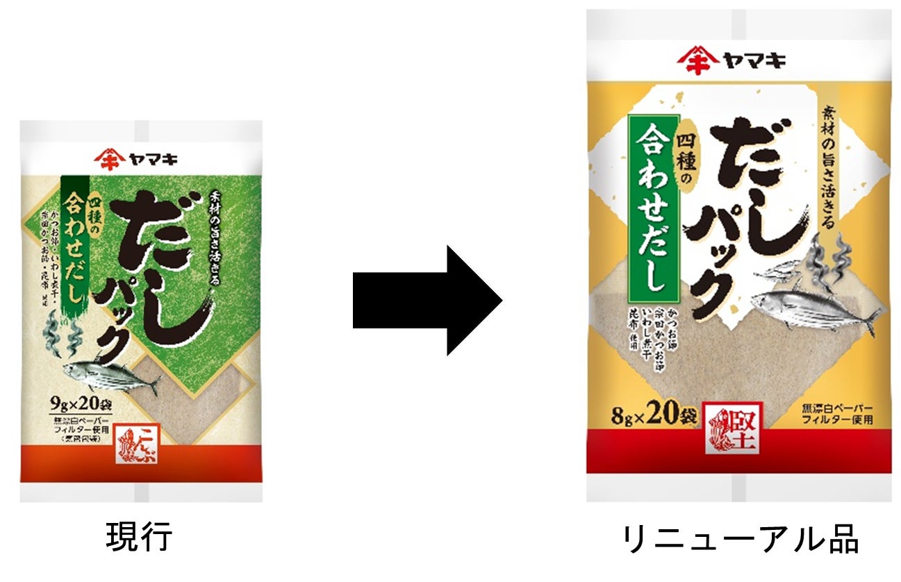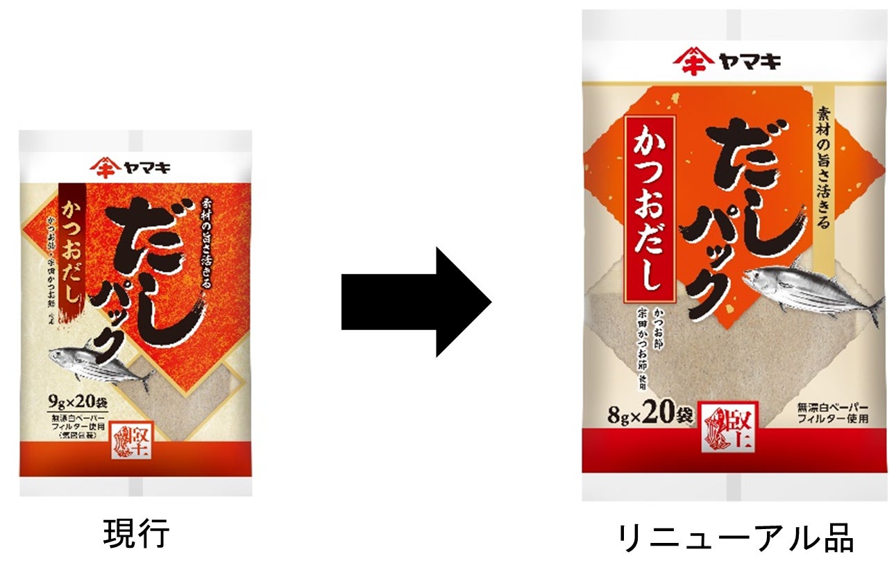 ヤマキ株式会社(本社:愛媛県伊予市 代表取締役社長:城戸善浩 以下 ヤマキ)は、「だしパックかつお8g×20P」と「だしパック合わせ8g×20P」をリニューアル発売します。