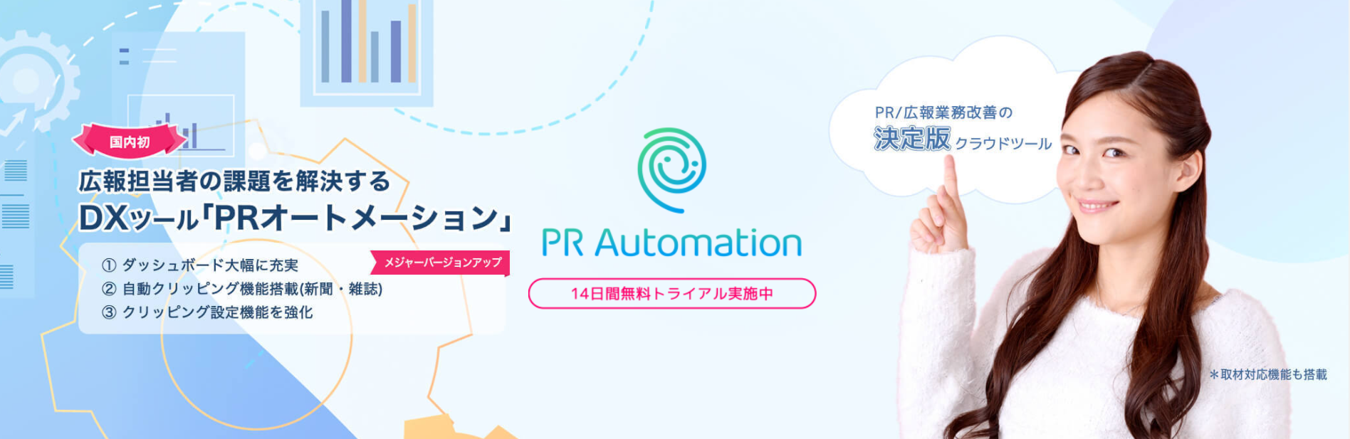 企画立案、プレスリリースの配信※、メディアリレーションの管理、クリッピングといった広報PR活動が「PRオートメーション」で完結します。