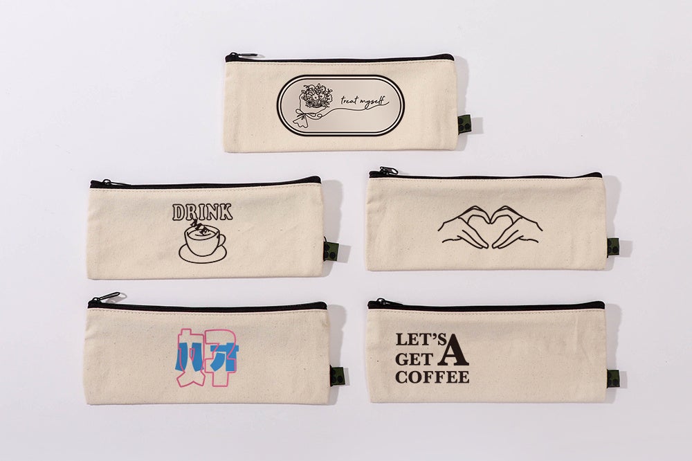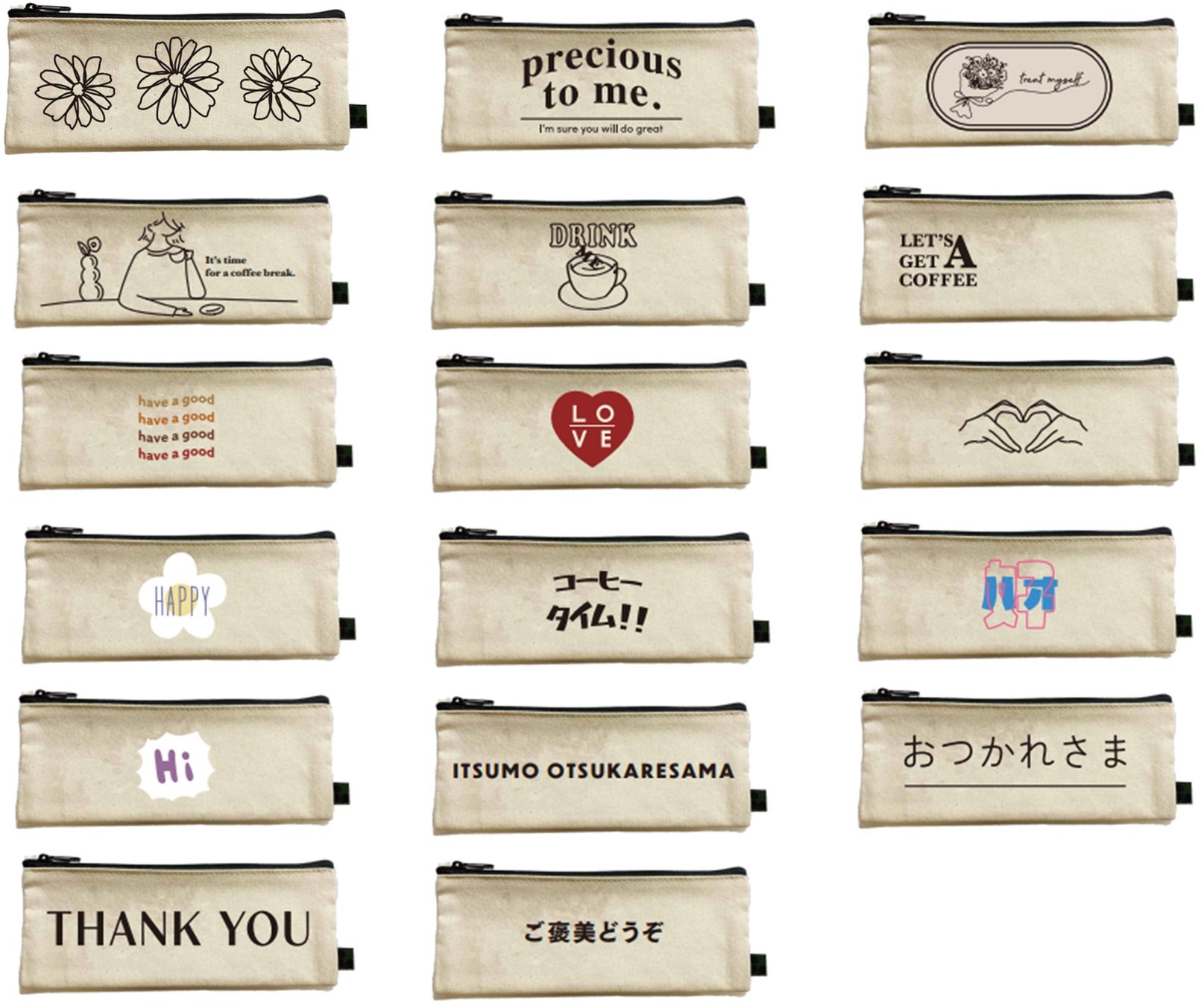ポーチ:無地のポーチに下記デザインから1種類シールを選び、お好みの場所にアイロンプリントしていただけます。