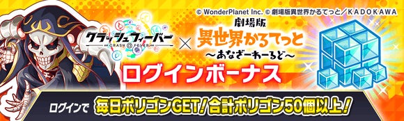『クラッシュフィーバー』×『劇場版 異世界かるてっと ~あなざーわーるど~』コラボ決定!