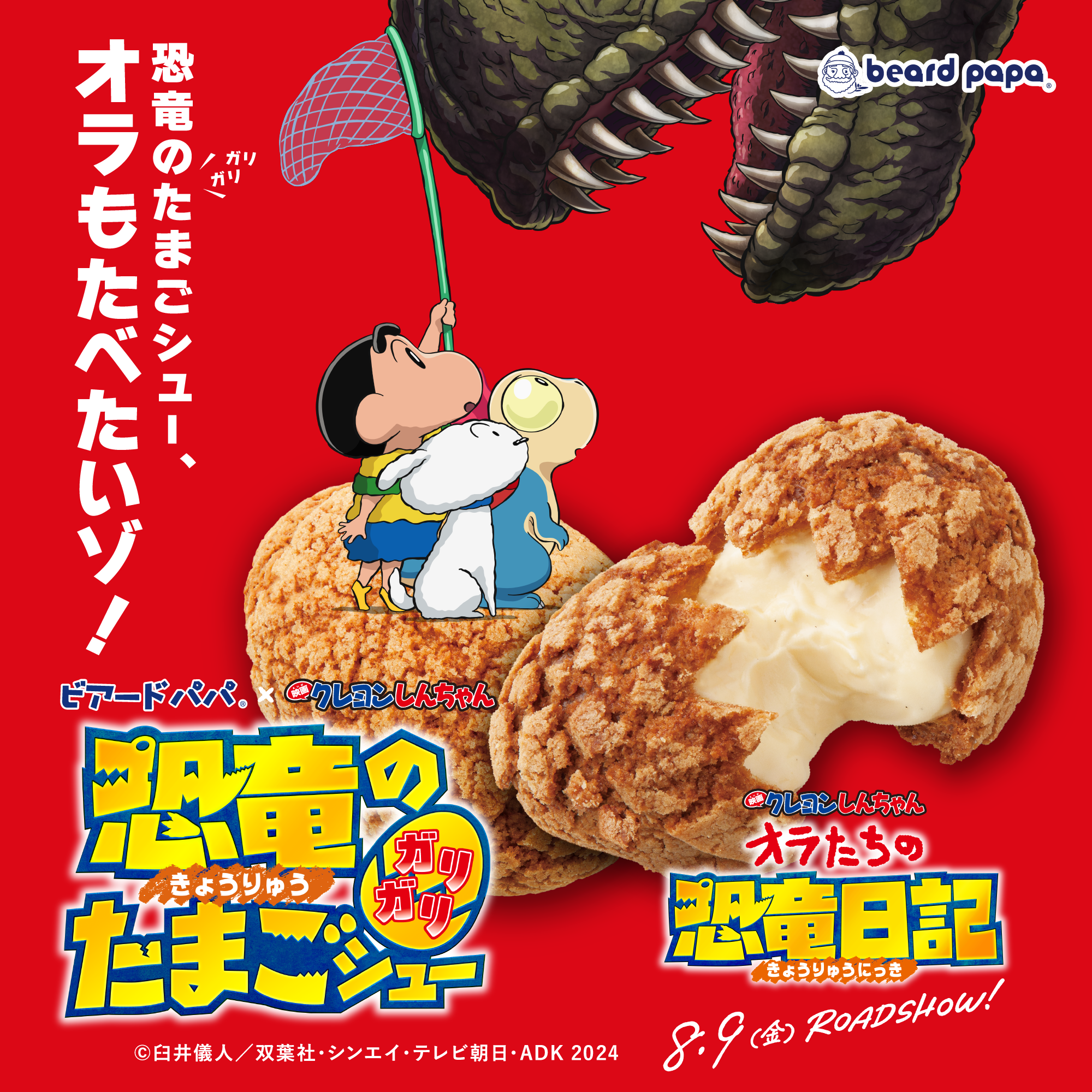 株式会社DAY TO LIFE(本社:大阪府大阪市北区、代表取締役:杉内健吉)が運営するシュークリーム専門店 ビアードパパが、2024年7月1日(月)より、毎年人気の“恐竜のガリガリたまごシュー”を、今夏公開の『映画クレヨンしんちゃんオラたちの恐竜日記』とのコラボレーションにて販売いたします。