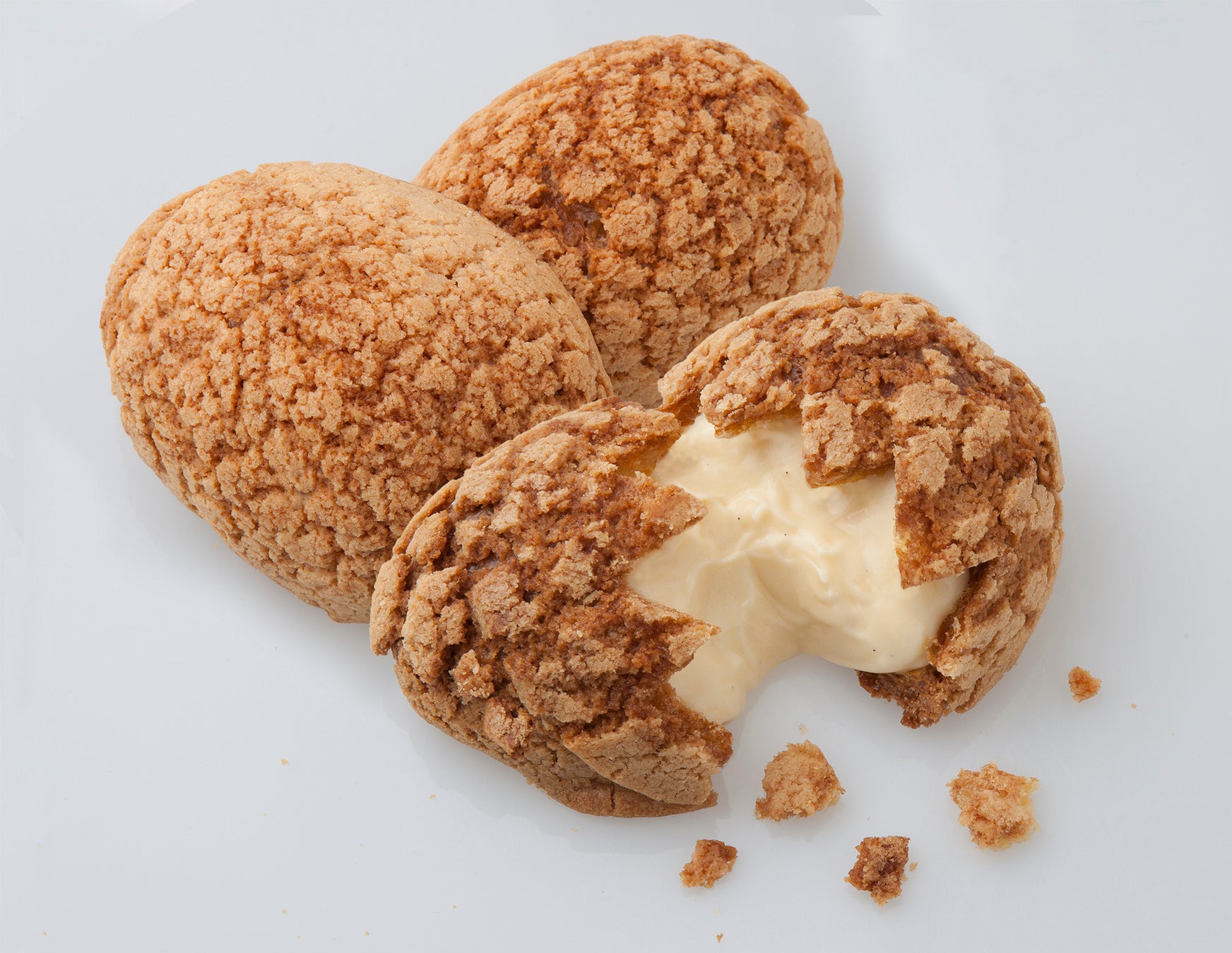 ザクッ!ガリッ!とハードな食感のシュー生地の中にビアードパパ自慢のカスタードクリームをつめました。まるで恐竜のたまごみたいなシュークリームです。