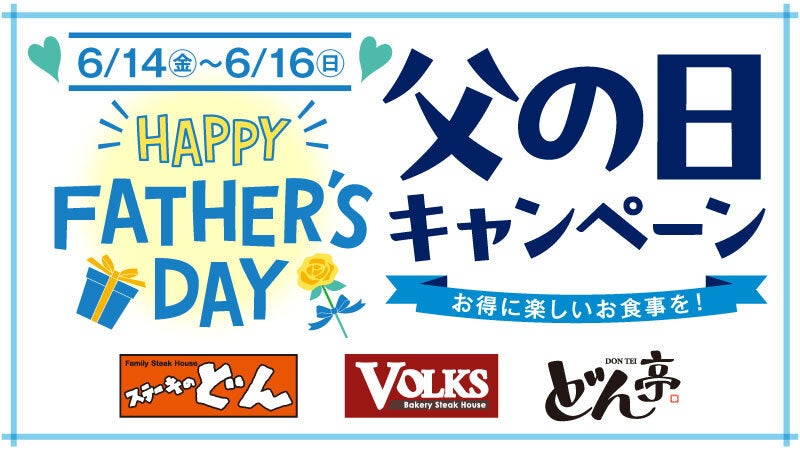 「ステーキのどん」「しゃぶしゃぶどん亭」「フォルクス」全店舗にて6月14日(金)から「父の日クーポンキャンペーン」を開催!お肉増量やドリンクなど、各レストランからプレゼント